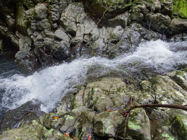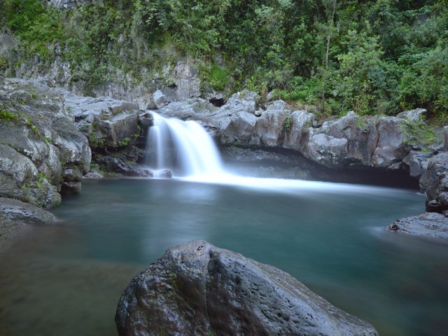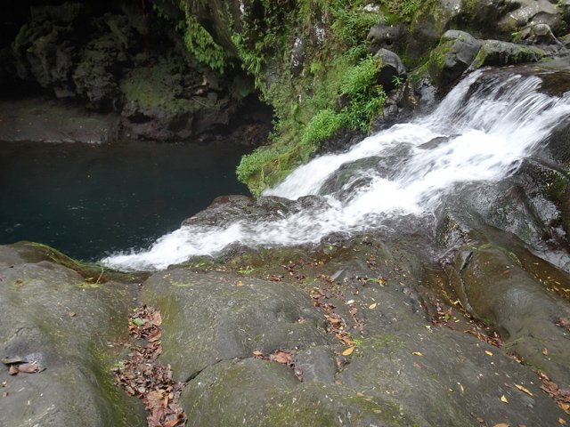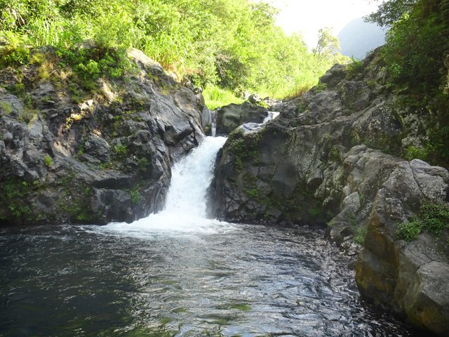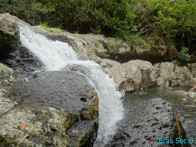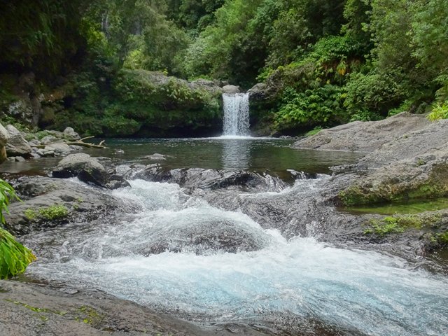 Cette minuscule cascade et son bassin se rencontrent lors de la traversée de la Ravine Henri Dijoux sur le sentier de la Chapelle en descendant vers le Bras Rouge. Impossible à manquer avec le bruit de l'eau.