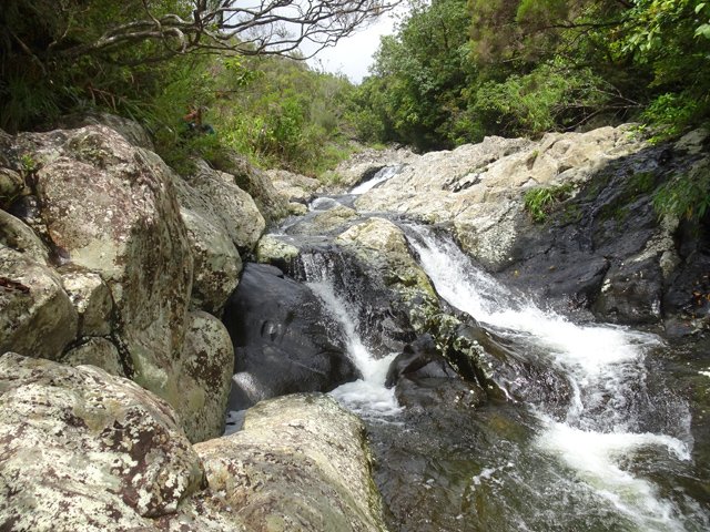 Même sortie, même cheminement que pour le Bras de Sainte-Suzanne. Les chutes, toboggans ou remous se longent pour accéder à la cascade principale.
