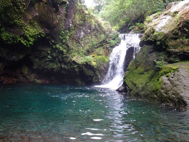 Cette fine cascade tombe à deux pas du sentier. On ne pas se baigner dans le bassin mais il est possible de se doucher sous la fine chute.