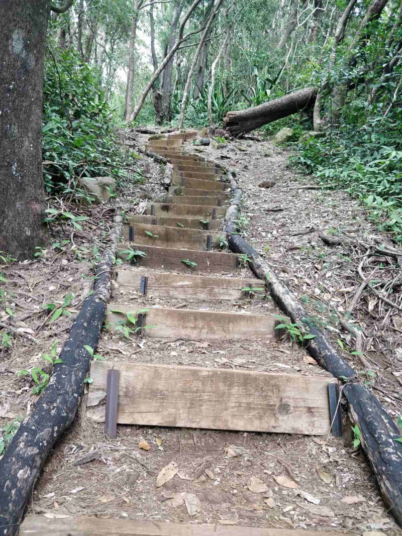 La randonnée débute au Stade de la Redoute, à la Petite Île. On peut garer facilement le véhicule au grand parking du stade. Traverser la route et marcher 200 mètres jusqu'au virage sur un superbe sentier aménagé par la ville (Photo 1). La distance est courte jusqu'au pont et on peut ainsi profiter de ce coin fleuri et décoré d'objets en bois de goyavier. Il finit par une carte de La Réunion créée avec des centaines de petits rondins de bois (Photo 2). Suivre la trace sous le pont. Elle remonte vers la route puis repart sous les piles sur un sol très pierreux et assez pentu (Photo 3). Après ce passage, le sentier, facile à suivre, grimpe assez fortement jusqu'au deuxième lacet de la route. Un sentier vient de la route. Prendre à gauche et poursuivre à travers les herbes jaunes et les chocas (Photo 4). La marche est plus facile et offre des vues sur le pont et sur une partie de la ville (Photo 5). De l'autre côté, ce sont les casernes, Petite Île et le Barachois (Photo 6). Les rares eucalyptus laissés debout par les cyclones sont remplacés par les bois noirs ou avocatiers marrons. On longe de loin le rempart de la Rivière (Photo 7). Le parcours domine la vallée de la Rivière Saint-Denis où quelques cases bordent le cours d'eau (Photo 8). Le premier kilomètre est à la portée de tous car il ne comporte aucune difficulté (Photo 9). On s'élève cependant assez rapidement, ce qui permet d'apercevoir le Pic Adam à l'horizon ainsi que les premières habitations du Brûlé (Photo 10). La grimpette commence avec quelques passages délicats et vertigineux comme annoncés plus bas sur les pancartes de l'ONF. Le danger est tout relatif ; il suffit de faire attention en franchissant ces petits obstacles. La liane papillon envahit de plus en plus les bords du sentier devenu plus pierreux (Photo 11). Les vues sur la ville sont omniprésentes et le pont Vinh San diminue à vue d'œil (Photo 12). Les passages pierreux sont assez fréquents avec de très hautes marches, parfois instables. Certaines sont taillées à même la roche (Photo 14). Les premiers filaos occupent le bord du sentier (Photo 15). Une légère descente permet de se reposer un peu avant de poursuivre dans la montée au Colorado (Photo 16). Entre les filaos, la végétation de lianes et de faux poivriers est si dense parfois qu'elle forme des tunnels sombres (Photo 17). Le terrain peut être humide dans les portions planes. Entre les filaos, le sentier est encombré de racines parfois glissantes par temps humide (Photo 18). On rencontre des poteaux de l'ONF aux croisements de sentiers moins fréquentés. Plus haut, de longues montées avec des marches en bois peuvent aider dans l'ascension (Photo 19). A la fin de ces marches, on rencontre le sentier venant du Lycée technique de la Montagne. La pente est presque terminée. Le sentier, toujours en excellent état, est bordé cette fois de grandes herbes et de goyaviers (Photo 20). Il s'élargit un peu pour une progression encore plus aidée (Photo 21). C'est par une véritable piste qu'on s'approche des premières installations du parc (Photo 22). On peut, soit poursuivre sur la piste, soit grimper un petit sentier menant à une aire de pique-nique avec table en béton. Comme le plus difficile est terminé il est possible de flâner dans le parc ou de monter directement vers la boule blanche de la station météo. On peut aussi emprunter un peu du sentier de découverte pour voir quelques arbres caractéristiques et se rapprocher d'une grande aire ludique constituée de longs ponts de singes (Photo 23). Les vues sur la vallée de la Rivière Saint-Denis sont toujours aussi belles (Photo 24). En cas de fatigue, repartir vers Saint-Denis sinon poursuivre sur la petite route franchissant un portail et se dirigeant vers plusieurs parkings. On devine la station sur la colline dominant la vallée depuis cette route bordée de filaos (Photo 25). La route se termine au parking devant une grande étendue d'herbe toujours bien entretenue où il est agréable de se reposer sur des bancs (Photo 26). Entamer la dernière montée en traversant la prairie ou en longeant les grosses touffes de bambous. Au pied de la boule blanche, un dernier belvédère permet de profiter de nouveaux panoramas sur Saint-Denis jusqu'à Sainte-Marie (Photo 27). Sur l'autre versant, de nombreuses cascades coulent du Bassin Diable ou d'autres ravines encaissées (Photo 28). Rejoindre ou non la station météo et revenir sur ses pas par le même itinéraire vers la Redoute à moins d'être parti tôt et de poursuivre dans d'autres directions de cette zone riche en sentiers de randonnée.