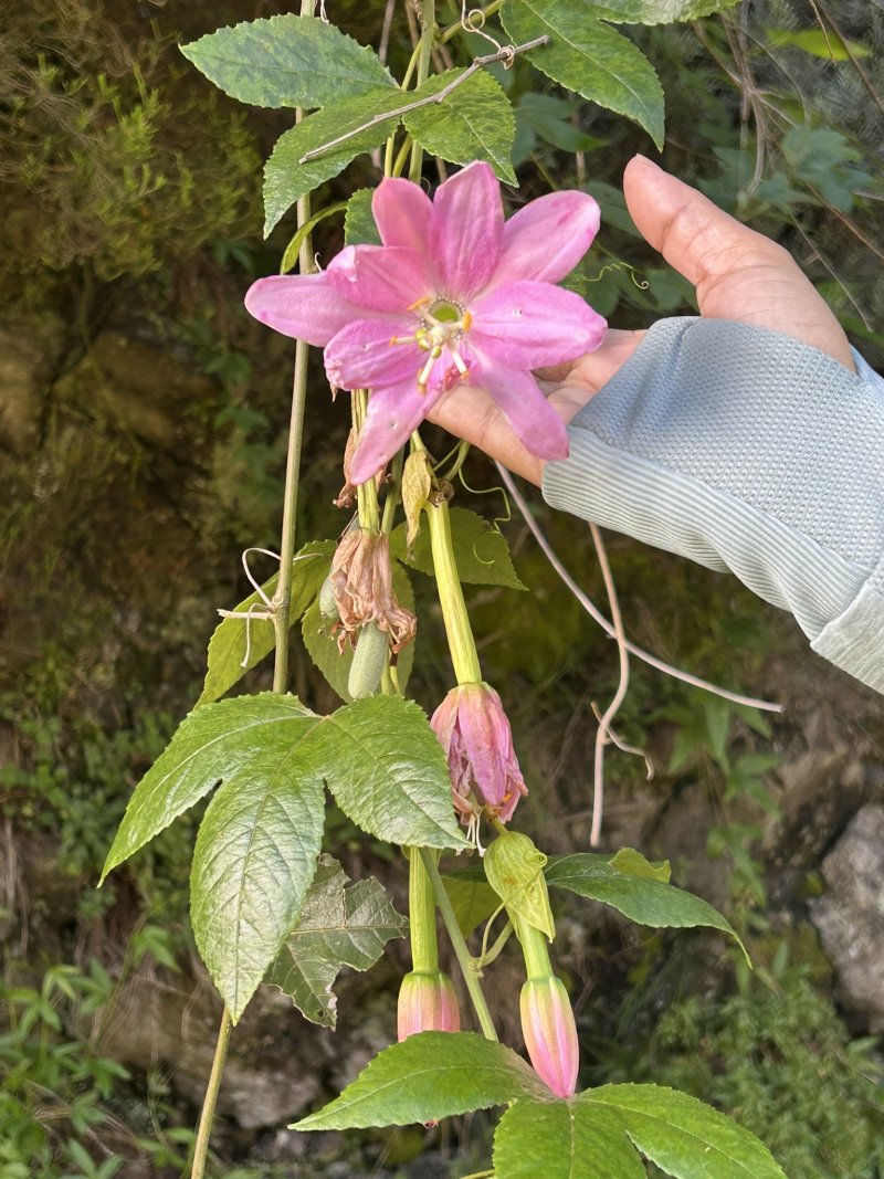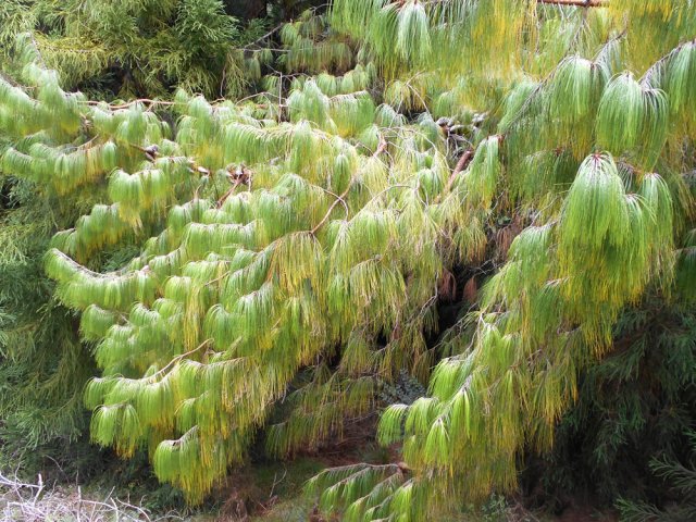 La randonnée débute ici par la route du Volcan qu'on descend sur un kilomètre avant d'entamer la longue traversée de la forêt de cryptomerias. On peut également commencer directement à la piste sous les conifères ou même par les prairies car le sens importe peu. Déjà, du parking situé à une cinquantaine de mètres de la piste, on bénéficie de superbes panoramas sur le Piton des Neiges et toute la Plaine des Cafres (Photo 1). La distance jusqu'au départ de la piste de la Grande Ferme est courte avec moins d'un kilomètre mais la circulation peut être importante par beau temps. Marcher au plus près du fossé. Après un dernier virage serré, on aperçoit le début de la piste fermée par une barrière. Elle commence sous des cryptomerias et ne les quittera qu'à mi-parcours pour entamer la traversée des prairies d'élevage (Photo 4). On marche à plat puis sur une pente légère en commençant une longue série de virages bordés des conifères. Certains semblent souffrir et jaunissent un peu mais ils sont régulièrement abattus (Photo 5). Les trouées sont rares sur la campagne environnante du côté de la Petite Ferme (Photo 6). La piste est agréable dans l'herbe rase ou les petits graviers (Photo 8). On peut pénétrer dans la forêt mais les troncs sont serrés, la lumière a du mal à passer et le sol est recouvert de branchages (Photo 9). Un peu partout, dans les arbres situés en bordure de piste, pendent des fleurs de passiflore banane (Photo 10). La fleur est belle et le fruit comestible mais on voit bien qu'elle se plait ici et à tendance à tout recouvrir. Des bornes vieillissantes permettent de mesurer la distance parcourue sans avoir à se munir de GPS, inutile sur cette sortie sur piste (Photo 11). On remarque également quelques vieux tamarins, aux branches couvertes de mousse et de petites fougères, qui souffrent beaucoup de l'ombre créée par les grands arbres (Photo 14). Les bringeliers envahissent également les abords (Photo 13). Heureusement, les engins passant sur la piste en empêcheront la prolifération. La descente se poursuit, toujours en pente faible et on parvient à une réserve de 500 m3 destinée à la lutte contre l'incendie (Photo 15). Cette réserve marque la fin de la descente. On poursuit, toujours sous les cryptomerias, en légère montée. On passe de nombreux radiers enjambant la vingtaine de petites ravines qui s'étalent sur le parcours. Le pin du Mexique se retrouve assez souvent en bordure de piste sans savoir s'il a été planté ou s'il s'est semé naturellement (Photo 16). Les virages de la piste continuent. Les petits raccourcis qui permettent de couper les lacets sont difficiles à trouver et encore plus à suivre et doivent donc être évités. Sur la droite, près de cinquante ruches sont groupées dans les hautes herbes (Photo 18). Les abeilles sont nombreuses et non belliqueuses mais il faut tout de même éviter de s'approcher pour les empêcher d'effectuer leur tâche. On sait que la piste dans les cryptomerias est bientôt terminée lorsque elle s'élargit, qu'elle se couvre d'herbe et de bouses de vaches (Photo 19). La piste part à 340° sur la gauche et il ne reste plus qu'à l'emprunter pour rejoindre le point de départ. On passe une ravine un peu plus visible que les autres (Photo 20) et les cryptomerias diminuent puis disparaissent complètement aux premières prairies. Une barrière ferme la piste pour éviter aux vaches de partir dans la forêt (Photo 21). La piste monte désormais lentement dans les prairies où paissent ou ruminent de beaux troupeaux. Si on marche doucement ou en silence, on aperçoit ça et là des cailles et des perdrix malgaches (francolins) qui filent en courant se cacher derrière les grandes herbes. De beaux tamarins des hauts parsèment les prairies, leur donnant un air champêtre très agréable. On voit très bien la lisière de la forêt de cryptomerias qu'on traversait il y a moins d'une heure et une bonne partie de la Plaine des Cafres à l'arrière (Photo 22). Plus loin, on aperçoit même quelques villes littorales (Photo 23). La piste, plus fréquentée par les tracteurs que la précédente comporte des bandes de roulement pour une marche facile et rapide (Photo 26). Le paysage sera toujours le même jusqu'à la RF du Volcan avec des tamarins dans les prés et des vaches qui regardent passer les randonneurs (Photo 27).