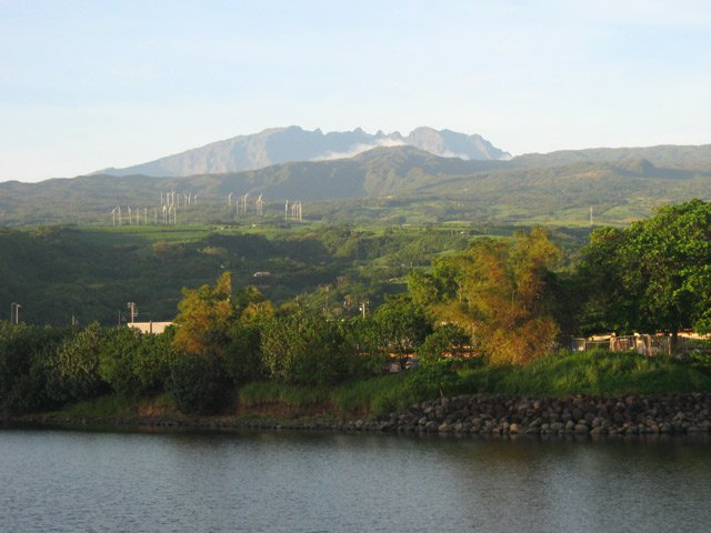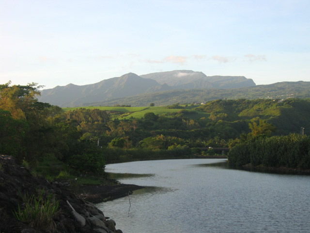 La randonnée débute à la Marine de Sainte-Suzanne, située sur la rive droite de la rivière. Se rapprocher de la déchèterie, non pour y glaner quelques odeurs mais pour profiter du beau point de vue sur les montagnes à partir des berges de la rivière (Photo 1). Il est possible de rejoindre les deux rives par la plage de galets si elle n'est pas trop creusée par les pêcheurs de bichiques et si on vient de Sainte-Marie par la plage (Photo 2). De l'autre côté de la rivière apparaissent quelques installations du parc de loisir du Bocage avec panoramas sur le Gros Morne (Photo 3). Longer la presque totalité de la Rue des Pêcheurs. Après cette route truffée de nids de poules aux alentours de l'école de la Marine et une traversée du village, gagner la plage de galets par une piste caillouteuse qui débute à gauche en face des dernières habitations. Rejoindre rapidement la plage de galets pour une courte traversée jusqu'au delta de la Grande Rivière Saint-Jean. Avec un estuaire en constants changements dus aux mouvements incessants de la mer et de la rivière, difficile de donner un itinéraire précis. Chercher donc le meilleur passage sachant qu'on sera obligé de franchir les pieds dans l'eau. Le débit est variable mais peut être fort. La hauteur d'eau ne dépasse pas les 60 cm, la largeur est très faible et le courant est lié à la force des vagues qui cherchent à envahir la rivière (Photo 4). C'est plus aisé à marée basse. Ce sera la seule occasion de se mouiller durant tout le trajet ; il est donc préférable de se déchausser pour éviter de faire pénétrer le sable dans les chaussures trempées. Une fois la traversée effectuée, on suit un peu la rivière qui ressemble parfois à un petit lac d'eau calme (Photo 5). On se retrouve plus loin face à un grand tas de terre qui marque le début de la déchèterie. Un sentier part vers la gauche et longe les deux usines (distillerie et sucrerie) pour se terminer à la route de Bois Rouge. Il est de plus en plus recouvert d'herbes ou de déchets et il est préférable de monter la butte et de traverser la zone de stockage de containers pour rejoindre une belle piste qui se termine également à la route de Bois Rouge. L'usine est assez longue mais le contournement, quel que soit le trajet emprunté, est rapide (Photo 6). Pas de pancarte d'interdiction de passer. Poursuivre à travers le hameau de Bois Rouge en passant devant le terrain de sport et en marchant jusqu'au petit rond-point en fin de route. Poursuivre sur une piste herbeuse, sous de grands eucalyptus, qui mène presque aux berges de l'étang (Photo 7). La région est une large plaine cultivée de canne à sucre comprenant le grand étang de Bois Rouge (Photo 8). L'endroit est charmant avec ces beaux paysages en direction du Gros Morne et des pitons qui l'entourent (Photo 9). Les jacinthes d'eau ont envahi une grande partie de l'étang (Photo 10). Après avoir profité des reflets du Gros Morne dans les eaux claires, on retrouve très vite une magnifique aire reboisée de petits arbustes et entretenus par l'association 3E (Environnement Est Ecologique ?). Quelques installations sommaires sont construites en bambou mais ne restent pas des années en raison des vents lors des épisodes cycloniques (Photo 12). Plus loin c'est une autre section entretenue par l'Association de Développement du Quartier des Mille Roches qui tond, peint et range les galets le long du chemin (Photo 14). Une piste herbeuse bordées de murets de galets ou de vacoas prolonge ces belles pistes (Photo 15). Un vrai plaisir de marcher ici jusqu'au Petit Etang de Bois Rouge (ou Cambuston, ou Colosse en fonction des gens que l'on rencontre !). On longe les installations de décantation de la station d'épuration sans en être gêné. Des passerelles au-dessus de l'eau couverte de jacinthes sont devenues trop dangereuses et sont désormais interdites au public (Photo 16). Espérons que les planchers seront refaits à neuf dans le cadre du réaménagement du parc du Colosse qui devrait prendre beaucoup de temps. Lorsque c'est possible, la promenade était ludique. Marcher ensuite en bord de mer sur une piste caillouteuse proche de la longue plage de galets (Photo 17). On peut même employer des petits sentiers qui traversent des zones herbeuses (Photo 18). La piste est agréable avec le talus sur la droite qui retient les eaux marécageuses du Petit Etang (Photo 19). A la fin du talus, partir effectuer un court écart vers les berges de l'étang (Photo 20). On rencontre très vite une large et plate piste, peu ombragée (Photo 21) qui se termine à la D47 après avoir longé un champ d'ananas mieux gardé que la prison de Domenjod par des dizaines de tôles ondulées en guise de clôture (Photo 22). Malgré le passage sur la route assez fréquentée, une halte au temple tamoul (Photo 25) ou à la cheminée en ruine permet de diversifier les paysages (Photo 24). L'arbre qui pousse en haut de la cheminée donne l'impression d'une fumée verte qui en sort, poussée par le vent ! Après une minuscule ravine, on trouve d'un simple coup d'œil la piste (Photo 26) qu'on suit sans aucune difficulté jusqu'à un restaurant puis une église en ruine (Photo 27) qui marque la fin du parcours. Ne pas manquer le minuscule cimetière marin dont une partie a été emportée par un cyclone ainsi que l'immense ficus au pied de l'église. Le retour s'effectue par le même itinéraire.