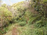 Retour : Rejoindre le premier cratère puis reprendre le sentier jusqu'à une bifurcation. Partir sur la gauche et traverser la zone forestière sur un sentier qui varie en fonction du relief. Il débute par des marches (photo 22), se poursuit sur des pentes parfois fortes dans les jouvences (photo 23) pour se terminer dans les vignes marronnes (photo 25). On retrouve le très agréable Chemin Safer (Chemin des Géraniums sur certaines cartes) bordé d'une végétation touffue et en pente légère vers Grand Coude (photo 26). Avant un réservoir à 1250 m d'altitude, on peut emprunter une piste qui ramène au sentier emprunté dans la montée mais il vaut mieux poursuivre sur le goudron. Plus bas, ce sont les prairies et leurs troupeaux qui bordent cette route (photo 27). Poursuivre en descente jusqu'au Chemin Théophile Gauthier et partir plein est jusqu'au parking du début.
