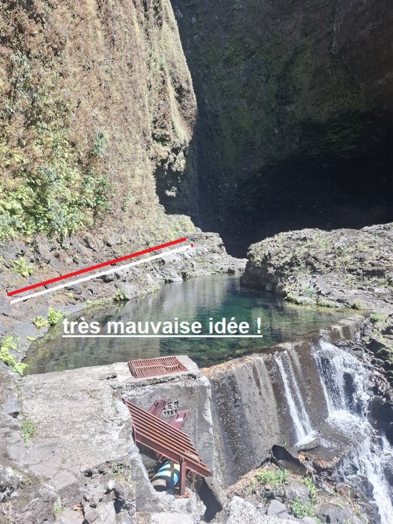 Longues vues sur le bassin , la cascade et surtout sur les passages vertigineux pour mieux en apprécier le danger si on ne prend pas garde.