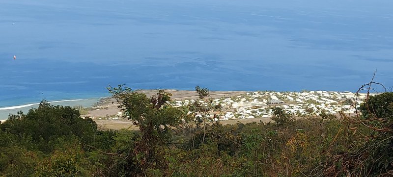 La randonnée débute au parking situé entre Saint-Leu et Cayenne. Rejoindre le hameau dont la rue principale est un escalier étroit remontant rapidement en s'éloignant de la mer (Photo 1). On se retrouve très vite dans la savane constituée d'immenses zones couvertes de zépinards (acacia farnesiana), comme toute la région d'ailleurs. Les parapentistes survolent cette plante épineuse, espérons qu'aucun incident technique ne les précipitera dans ces arbustes peu accueillants. Le sentier grimpe ensuite au milieu de ces acacias par une pente raisonnable et un passage assez étroit (Photo 2). D'énormes roches bordent le parcours et participent, une fois chauffées au soleil, à l'inévitable transpiration (Photo 3). Certaines portions de ce sentier sont sommairement pavées, sans doute à l'époque où il n'y avait pas de route. Les arbustes ne sont jamais très hauts et permettent de profiter des panoramas sur le littoral de Saint-Leu. Lorsque les épineux diminuent, ils sont remplacés par de hautes herbes qu'on n'a peu l'habitude de voir vertes. Un peu plus haut, c'est une canalisation qu'on longe sur un sentier facile. Moins de 30 minutes plus tard, on se retrouve auprès de la Route des Tamarins où la circulation importante est bruyante. Un escalier métallique descend le long de l'ouvrage et permet de se rendre en-dessous. De l'autre côté, le sentier remonte fortement mais il peut être très vite recouvert d'herbe, faute d'entretien (Photo 4). Il grimpe vers le village de Bras Mouton par deux itinéraires possibles. Le premier part à droite à la petite passerelle en bois rencontrée après la RN1 (Photo 5). L'autre, à gauche, sera emprunté au retour. Franchir la passerelle et tourner à droite en longeant le grillage sur un sentier étroit. Les épineux sont toujours là. Le sentier, même mal entretenu se suit sans hésitation et sans griffure (Photo 6). 150 m plus loin, la végétation change un peu autour du sentier toujours facile à suivre (Photo 7). On entend le bruit d'un moteur et l'on se retrouve devant une station de pompage. A partir de là, la montée devient très facile car la piste est régulièrement nettoyée pour permettre aux équipes de maintenir le matériel en état (Photo 8). Certains virages s'approchent de la Ravine de la Chaloupe qu'on surplombe par moments. La pente ne faiblit pas, sans jamais être très forte. Certaines portions un peu plus caillouteuses sont parfois plus pentues (Photo 9). 20 minutes de marche après la passerelle, on s'approche des premières habitations et cultures (Photo 10). La piste (le Chemin des Roses des Bois) devient de plus en plus fréquentée par les véhicules et se transforme en route. La jonction avec la RD13 comporte des pentes plus fortes que sur la piste (Photo 11). On peut souffler en regardant vers l'océan où le regard porte jusqu'à la Pointe au Sel. On quitte le Chemin des Roses des Bois qu'on retrouvera à la fin du prochain tronçon passant par Notre Dame des Champs. Bifurquer à gauche sur la RD13 et marcher jusqu'au début du Chemin Potier. Cette petite route en lacets, sans beaucoup de circulation, est agréable entre bois, friches et champs de cannes (Photo 12). Les allergiques au goudron compenseront en regardant les panoramas sur la côte et l'océan de l'Etang Salé les Bains jusqu'à la Saline (Photo 13). La montée de 45 minutes ne comporte pas de raccourcis pour éviter les nombreux virages. La pente, régulière sur toute la montée, s'accentue un peu à l'approche de la RD3 (Photo 14). La portion de près d'un km pour atteindre le chemin du retour s'effectue en zone semi-urbaine sur de larges trottoirs (Photo 15). Profiter de cette traversée pour repérer les cases ou les jardins fleuris (Photo 16). Les rencontres y sont faciles et très souvent agréables. Ne pas hésiter à rester le temps qu'il faut pour lier de sympathiques conversations avec les habitants. La route franchit quatre ravines avec, chaque fois, de belles vues en direction de l'océan (Photo 17). Après 800 m de RD3, emprunter à gauche l'escalier menant au Chemin des Corbeilles. La jonction avec le sentier passe par des rues étroites et des raccourcis très pentus où les pneus doivent déraper par temps de pluie (Photo 18). Ne pas manquer le départ du sentier dans un virage de la très forte pente du Chemin des Goyaviers (Photo 19). Le reste de la descente ne quittera guère ces sentiers jusqu'à la mer. Le point de départ est un escalier de quelques marches (Photo 20). La pente est toujours raisonnable dans une végétation qui procure de l'ombre (Photo 21). Eviter les sentiers qui partent en direction des propriétés privées en restant constamment sur le sentier principal. Les chocas, de plus en plus nombreux, ne gênent pas la marche sur un large sentier terreux (Photo 22). Il rencontre régulièrement les virages en épingle du Chemin Mutel qu'on évite ainsi sur toute sa longueur. Certaines portions courtes mais pentues ne ralentissent pas les joggers sautant de caillou en caillou (Photo 23). Un peu avant l'arrivée à Bras Mouton, on peut continuer sur l'un ou l'autre des sentiers qui effectuent une fourche. Couper encore des virages au niveau du terrain de sport et emprunter à nouveau des ruelles étroites et pentues (Photo 24). Là également, des escaliers et raccourcis évitent les ruelles entre les habitations. Pour ne pas manquer le Sentier de Cayenne, suivre les flèches au sol apposées lors des dernières courses. Une fois sur le sentier, plus besoin de réfléchir à l'orientation. Le passage est large, très fréquenté, avec toujours de magnifiques vues sur la mer (Photo 25). La pente est rarement forte et cette descente est presqu'une balade sur des sols terreux ou rocheux (Photo 26). La végétation est de plus en plus pauvre au fur et à mesure de la descente, avant de rencontrer les premiers épineux (Photo 27). On entend les véhicules de la RN1 puis on arrive au gué rocheux sur le Bra