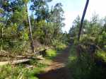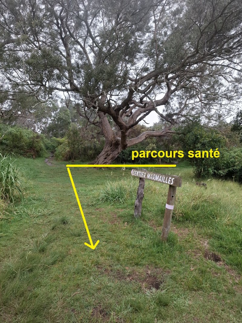 La randonnée débute ici au premier parking de la zone qui en comporte plusieurs. Aussitôt le petit escalier franchi, on se retrouve face aux panneaux indiquant plusieurs sentiers (Photo 1). Prendre celui de gauche en direction du village et passer entre des tamarins, dont un énorme qui n'a pas résisté au dernier coup de tempête (Photo 2). On se retrouve rapidement à un grillage entourant le domaine pour profiter sans obstacle des vues sur le Piton de la Ravine Blanche et le village éponyme (Photo 3). Les parterres fleuris au départ du Sentier Zabeille laissent présager d'une belle balade (Photo 4). Hélas, la large allée remontant le long des propriétés est peu fréquentée et encore moins entretenue (Photo 5). Heureusement, c'est à partir de ce parcours que l'on a les meilleurs panoramas sur les plus hauts sommets de l'île (Photo 6). La rosée du matin sur les herbes a tôt fait de mouiller les pieds, surtout en cheminant à l'ombre (Photo 7). La trace est toujours visible et chacun jugera en fonction des premiers mètres ou des projets de la matinée si cela vaut la peine de l'effectuer. Une fois au sommet, redescendre vers l'entrée et repartir sur le circuit bien plus agréable qui remonte à nouveau avec quelques petites marches (Photo 8). Plus haut, on peut même souffler sur des portions planes (Photo 9). Puis on remonte à nouveau en longeant parfois de grands tamarins terrassés par le vent (Photo 10). Même faute d'entretien, le sentier reste large et facile à suivre (Photo 11). Les arbres rencontrés sont beaucoup plus grands et beaux que sur ce pauvre sentier Zabeille (Photo 12). Le circuit alterne descentes et montées séparées par endroits de moins de 10 m. On quitte les tamarins pour traverser une zone envahie d'acacias noirs dont beaucoup traînent au sol (Photo 13). A l'approche du bois d'eucalyptus les renouées du chinois ont envahi les abords du sentier (Photo 14). On parvient plus haut à la ferme photovoltaïque qu'on devine derrière les clôtures. Les eucalyptus permettent de marcher un peu à l'ombre avant d'entamer la descente suivante (Photo 15). Les arbres, touffus et très hauts, ont également souffert des épisodes venteux et certains arbres sont ébranchés (Photo 16). Quelques racines ne ralentissent pas la marche sous les grands arbres (Photo 17). Dans la dernière descente de cette sortie, on retrouve de plus en plus de grands tamarins tortueux (Photo 18 et 19). Certains semblent ne jamais avoir souffert pour le plus grand plaisir des yeux (Photo 20). Aux croisements de sentiers, rien de plus facile que de poursuivre en lisant les pancartes car les panneaux, eux, sont rares à être encore lisibles (Photo 21). Le sentier bordé de grands arbres est toujours aussi facile (Photo 22). On retrouve de nouveaux tamarins couchés au sol qui continuent cependant à vivre (Photo 23). Après un dernier festival de tamarins majestueux (Photo 25 et 26), on se rapproche de la route au milieu des fleurs, dont de hautes agapanthes et de grosses touffes d'hortensias bleus (Photo 27). La boucle prend fin à la route que l'on peut rejoindre par plusieurs sentiers passant près des kiosques de pique-nique (Photo 28).