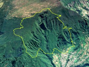Le dénivelé positif de cette boucle moyennement longue est relativement faible pour une sortie en montagne. En revanche, deux des sentiers employés sont parfois abrupts, quel que soit le sens choisi pour l'effectuer. Les portions de pistes ou de routes rencontrées régulièrement sur le trajet présentent l'avantage de pouvoir se reposer un peu tout en profitant des points de vue assez rares sur la côté. Très fleuries au mois de février, ce sont plusieurs millions de taches jaunes des longoses qu'on aperçoit dans les sous-bois, sur les pentes des montagnes ou le long des sentiers. Si l'odeur est très agréable, il est pourtant très inquiétant d'en voir autant dans cette région. Des campagnes de reboisement se rencontrent à plusieurs moments lors de la montée mais on voit peu d'arbres au milieu de cette jungle de longoses qui ne laissent pas un cm² à la concurrence. Plusieurs pancartes ont disparu le long du trajet mais en pointant la carte il n'y a pas de difficulté pour suivre cette boucle sans crainte de se perdre. La très discrète pancarte indiquant le Sentier du Piton des Merles en direction de la Pièce Jeanne a également disparu de son tamarin. C'est la seule partie de l'itinéraire qui fait un peu aventure malgré un sentier encore bien marqué mais bientôt perdu dans les longoses si rien n'est fait. Ces deux kilomètres augmentent la moyenne de la boucle qui était bonne jusque là mais le maniement du coupe-coupe y est pour beaucoup. On se retrouve bientôt dans la descente, scabreuse par moments, de l'abrupt Sentier du Malabar Mort dans une magnifique forêt qui donne l'occasion de photographier de belles racines ou visiter un affouche bien indiqué.