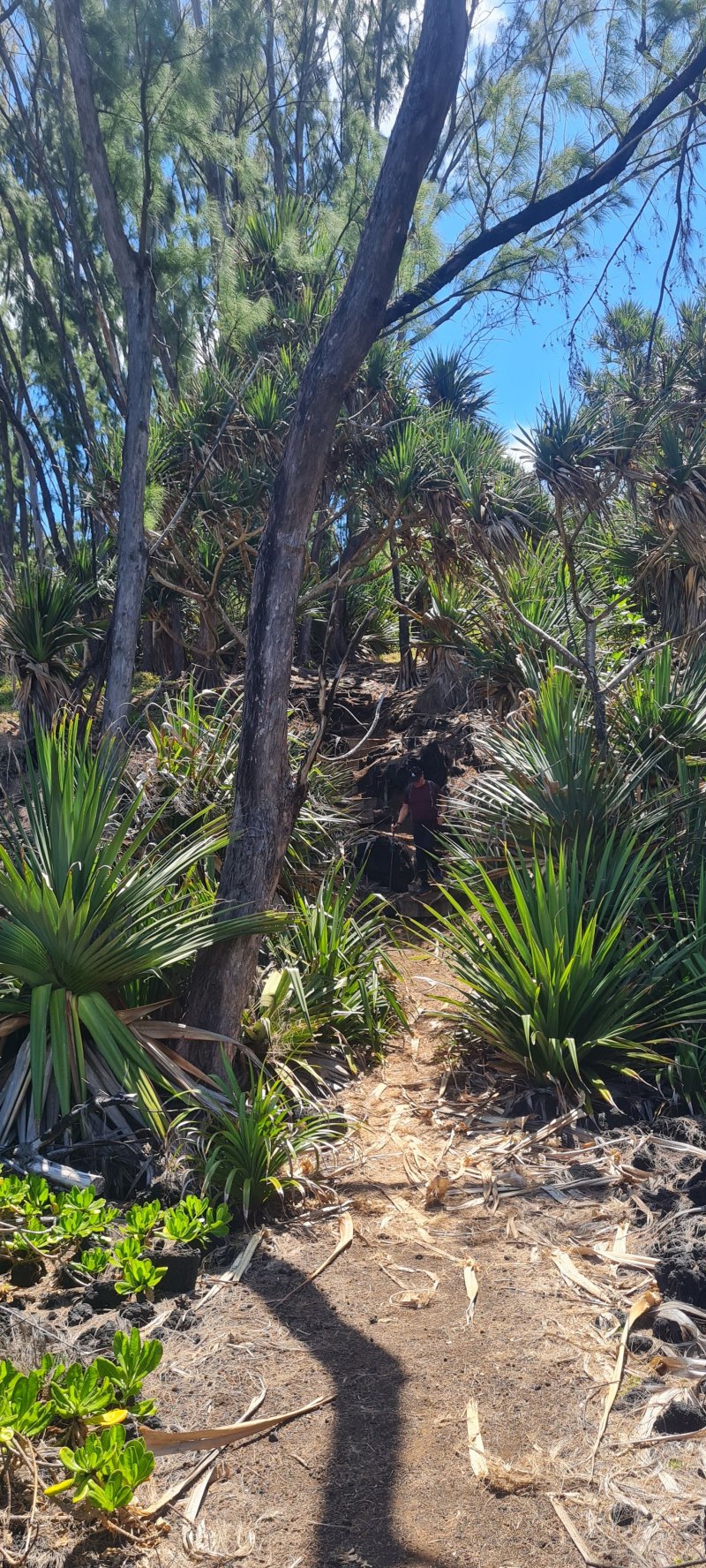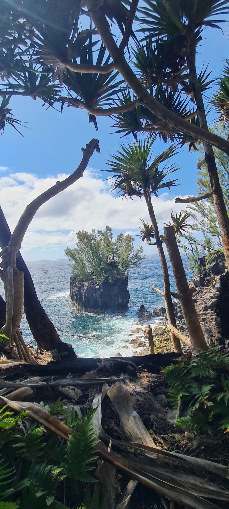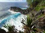 La randonnée débute avant Bois Blanc, près d'un oratoire rouge dédié à St-Expédit où plusieurs véhicules peuvent stationner. Un petit sentier escarpé et rocheux bordé de filaos, fougères et maniocs marrons est facile à trouver 30 mètres plus loin (Photo 1). Il est étroit et surtout entretenu pas les fréquents passages des propriétaires de plantations de vanille qu'on longe sur la première partie (Photo 2). Après avoir franchi des zones en pente couvertes de végétation, on parvient au Quai de l'Eglise qui comporte plusieurs curiosités géologiques réclamant un peu de temps pour les découvrir. Les arches basaltiques demandent de l'attention mais le Quai de Tigo qui avance dans l'océan se remarque très facilement (Photo 3). La région comporte surtout des filaos par milliers qui laissent sur le sol leurs vieilles feuilles bruissant sous la semelle (Photo 4). Le sentier frôle le plus souvent la falaise et de beaux points de vue sont possibles sans trop s'approcher du bord (Photo 5). La Roche du Pas de Cabris mérite également une courte halte. On s'approche des habitations de Bois Blanc après avoir franchi la ravine au fond basaltique. Le sentier frôle les jardins et arrive à une aire de repos sous de grands cocotiers ou badamiers (Photo 7). Partir à gauche au premier kiosque et poursuivre sur le sentier qui traverse la Ravine Ferdinand et remonte assez fortement en haut du rempart par de nombreux lacets. Le sentier devient plus plat et agréable sous les bambous au milieu des fougères (Photo 8). On domine l'Anse des Cascades qu'on aperçoit dans les trouées (Photo 9). Le sentier se poursuit dans une agréable verdure jusqu'au croisement du sentier du Gros Piton (Photo 11). Partir sur la droite et entamer quelques lacets faciles jusqu'à la route de l'Anse des Cascades. Suivre la route ou quelques raccourcis et se diriger vers les cascades qu'on entend tout d'abord avant de les voir (Photo 12). A l'approche du restaurant, plusieurs passerelles permettent de s'approcher des plus belles d'entre elles. Passer au plus près de l'embarcadère des barques de pêcheurs et des falaises dominant la mer (Photo 13). Après cette courte visite, partir en direction des cocotiers abritant plusieurs kiosques de pique-nique (Photo 14). On peut voir sur la droite toute la côte qu'on vient de parcourir (Photo 15). Le sentier commence à monter pour franchir une falaise assez haute. Le sol est caillouteux la plupart du temps. Les vacoas sont toujours aussi nombreux. On aperçoit au loin la fin de la coulée de 1977 qui a fini sa course dans l'océan (Photo 16). Le sentier effectue souvent des dents de scie pour franchir des reliefs de la côte. Dans l'ensemble, il n'est pas très difficile et souvent très agréable (Photo 17). A l'approche de Piton Ste-Rose, on franchit plusieurs fois de hautes marches ou des portions rocheuses où les mains sont même nécessaires (Photo 18). Ne pas manquer les belles criques quinze mètres plus bas où viennent se fracasser les vagues. Le sentier dans les maniocs de bord de mer ou les filaos est plat et facile pour marcher plus vite (Photo 19). On arrive sans transition à la partie encore désertique de la coulée de 1977 qui a recouvert plusieurs hectares de lave encore vierge par endroits. On peut se rapprocher de la mer mais les roches volcaniques sont hautes et coupantes par endroits. Le sentier traverse cette lave où le sable gris a pris de plus en plus de place (Photo 20). Le parcours continue vers la Pointe Corail en longeant la côte au plus près. On retrouve les mêmes paysages et les mêmes falaises dominant les vagues bruyantes (Photo 21). On pense qu'il est impossible de descendre quand on aperçoit un pêcheur et sa canne en bambou qui tente de prendre des poissons de roche (Photo 22). Vers le Quai des Capucins ou la Pointe de Bellevue, le sentier s'éloigne parfois un peu de la côte pour aussitôt y revenir (Photo 23). En se penchant un peu, on devine la fin de la remontée de la côte dans un kilomètre (Photo 24). Les falaises sont très présentes et il est assez difficile de s'approcher au plus près des vagues, surtout que certaines zones d'éboulements sont parfois fragiles et dangereuses (Photo 25). Du côté de Cap Bernard, on rencontre de plus en plus de champs de canne d'où l'on aperçoit les citernes de Sainte-Rose à 800m d'altitude (Photo 26). Les vacoas reprennent avant de rencontrer des faux poivriers ou de grands badamiers qui procurent une ombre agréable. Au sol, l'herbe remplace de plus en plus le sable, les scories et les cailloux de lave. Les dents de scie ne sont pas finies pour autant et on passe même des aspérités du terrain par quelques marches ou échelles qui facilitent grandement la montée ou la descente. La Pointe Corail se rejoint sans efforts particuliers ; ne pas hésiter, puisque la randonnée est presque terminée, de profiter de toutes ces criques, anses, grottes ou roches qui procurent toujours le plaisir de contempler le bord de mer. Un panneau marque la fin symbolique de cette balade sportive en bord de mer (Photo 27). Le sentier se rapproche très près de la mer du côté de Port Ango où les coraux morts permettent de mieux comprendre le nom donné à la pointe qu'on vient de passer (Photo 28). Quelques cannes et grandes herbes séparent encore Port Ango de la Ravine Glissante, fin de cette sortie en bord d'Océan. Il est possible de poursuivre le long de la mer ou suivre une piste amenant sans effort à la RN 2. On trouve facilement à la Ravine Glissante l'arrêt de bus qui permet de revenir à Bois Blanc, à moins de poursuivre vers le Nord jusqu'à Sainte-Rose. Les sportifs qui sont partis tôt le matin pourront entreprendre le chemin à l'envers ; la sortie sera beaucoup plus longue mais guère plus difficile que ce qui vient d'être accompli. Prévoir tout de même une journée complète et éviter de s'arrêter pour admirer les paysages.