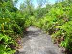 Le Sentier des Laves est enfin accessible à tous depuis la fin d'un magnifique travail d'entretien des équipes de l'ONF. C'est donc le moment de le parcourir du sud au nord ou du nord au sud. Si on manque de temps ou d'entraînement, des portions plus courtes sont possibles d'est en ouest vers le Quai de la Vierge ou en traversant la coulée de 2007. La boucle proposée ici se situe entre les deux précédentes. Contrairement à ces deux parcours, celui-ci ne permet pas de s'approcher des vagues qu'on se contentera d'admirer depuis le haut des falaises à moins de tenter une descente vers le Grand Cap. Il comporte quatre types de cheminement : Un superbe sentier dans les laves de la coulée de 2002 suivi du Sentier des Laves avant de remonter par une piste boisée abandonnée et donc de plus en plus envahie. Elle rejoint la route pour regagner le véhicule en empruntant la route vers le nord. La circulation est assez faible sur la RN2 et la verdure fleurie qui la borde ou les panoramas sur l'Océan permettent de bien supporter ces deux kilomètres de bitume.