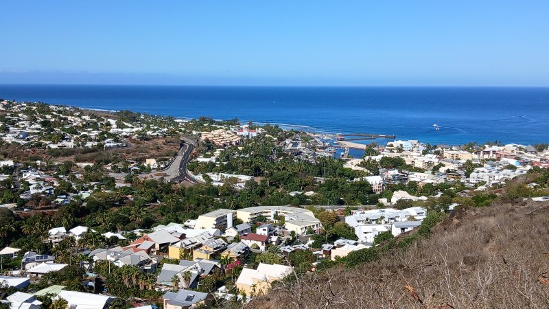 La randonnée débute à l'entrée du Théâtre de Plein Air de Saint-Gilles à partir de la D10. Il vaut mieux stationner le long de la route avant d'emprunter à pied la petite route menant au théâtre. On parvient à une barrière d'où il est facile d'évaluer le chemin à parcourir en repérant Saint-Gilles droit devant (Photo 1). Le panneau situé au départ donne des indications sur les barrages et systèmes de transport de l'eau au XIXème siècle (Photo 2). Avant d'entamer la descente par la large piste empierrée, repérer le sentier partant en direction de la colline. Il est étroit, peu entretenu, mais se suit sans difficulté jusqu'au sommet encombré de roches entourant les installations des antennes (Photo 3). En dominant l'océan de 125 m, on bénéficie depuis les rochers de belles vues sur la région, le théâtre, la Ravine Saint-Gilles ou les vergers (Photo 4). On remarque également le port entouré des habitations blanches de la ville (Photo 5). Rejoindre le point de départ. Il est possible de commencer la descente en allant repérer le kiosque pour le casse-croûte du retour, accessible aux handicapés (Photo 6). Rejoindre alors le circuit principal bordé au début d'une longue barrière en bois (Photo 7). Le chemin, très fréquenté, est large et propre. Il frôle une petite grotte occupée par un "Ti bondié" et se poursuit en descente légère sur un sol de plus en plus caillouteux (Photo 8). Le balisage, parfois un peu effacé, est représenté par des caméléons verts qui ont donné leur nom au sentier (Photo 9). Même tôt le matin, la chaleur peut déjà être importante. On profite de larges panoramas sur la vallée étroite de la Ravine Saint-Gilles (Photo 10). Puis le chemin empierré descend de plus en plus vite sur une forte pente. On le trouve un peu raide au retour mais il est heureusement assez court (Photo 11). On parvient assez vite à de grosses touffes de bambou après avoir franchi une petite passerelle. Avant de poursuivre, on peut partir sur la gauche vers un ancien sentier botanique abandonné. Repérer les quelques panneaux encore en place et continuer ou non vers l'amont de la rivière en suivant un sentier en rive droite. Il passe à un moment dans un ancien canal de transport de l'eau sur un sol très caillouteux. On est très proche de la ravine et de son agréable bruit d'eau courante (Photo 12). Marcher ainsi jusqu'au petit barrage de recueil de l'eau à l'époque où de nombreuses usines sucrières avaient besoin du précieux liquide (Photo 13). Faire demi-tour jusqu'au jardin Bottard en retrouvant les bambous. Il reste des manguiers un peu partout. Des panneaux donnent l'occasion de souffler un peu en lisant les explications ou un poème (Photo 14). Continuer en rejoignant le premier gué constitué de grosses roches pouvant être glissantes après la pluie (Photo 15). On laisse donc le jardin Bottard et ses manguiers poussant à travers les roches pour marcher vers Saint-Gilles (Photo 16). Le petit cours d'eau devient de plus en plus paisible dans les cultures (Photo 17). Les taros et grandes herbes occupent également les berges (Photo 18). On parvient bientôt à un nouveau gué, plus glissant, qui se franchit en quelques secondes (Photo 19). La fin du sentier est toujours aussi facile entre d'anciennes plantations et jardins cachés derrière les haies abritant de vrais caméléons (Photo 20). L'eau stagne presque dans la ravine sur le sol de plus en plus plat (Photo 21). Le pont enjambant la Rue du Général de Gaulle indique la fin proche de la portion sur sentier (Photo 23). Profiter des dernières fleurs rencontrées tout au long du parcours (Photo 24). Les derniers mètres sont bordés de quelques panneaux (Photo 25) avant de remonter vers une aire de repos comportant quelques bancs. Au centre, une grosse baleine bigarrée accueille chaque jour des dizaines d'enfants grimpant sur son dos (Photo 26). Il est possible à cet endroit de faire demi-tour et revenir en direction du théâtre. Si l'on souhaite visiter Saint-Gilles, se diriger vers le port par des allées bordant la berge ou par les routes pour atteindre les ilots que l'on rejoint par des ponts et des escaliers (Photo 27). A la saison, les bateaux chargés de touristes ou de plongeurs partent en direction des baleines ou dauphins nageant au large. Si la chaleur n'est pas trop forte, flâner dans les rues de la petite ville balnéaire et rejoindre par exemple la case Chez Loulou pour y déguster une de leurs spécialités (Photo 28). Il est possible de poursuivre la visite  vers la Vierge à une centaine de mètres de là. Le retour emprunte le même itinéraire, un peu plus difficile en raison de la pente sur les marches en pierre.