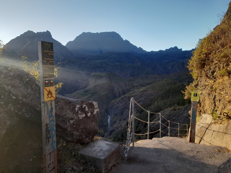 Objectif du jour : le tour du Piton Bronchard depuis le Maïdo, aller-retour fait en 05h20, pauses et détours compris ( la petite église de roche plate vaut vraiment le coup )