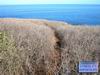 La randonnée débute à la Saline les Bains, au parking de Trou d'Eau en longeant la plage de sable corallien vers le sud. Les rochers en fin de plage se passent aisément et on trouve plus loin une discrète sente qui passe devant un restaurant en ruine avant de se transformer en un assez beau sentier très praticable (Photo 1). On retrouve ensuite la longue plage de la Saline les Bains Sud bordant un terrain militaire où l'on peut parfois voir, en semaine, les commandos barbouillés de peintures de camouflage s'entraîner au combat. Cette plage est essentiellement recouverte de coraux morts (Photo 2). Elle se termine à la Ravine de Trois Bassins qui se franchit sans encombre entre la mer et le petit étang créé par la retenue de sable au fond de la ravine. En cas de fortes eaux, grimper sur la route et revenir après le pont. La mer se jette sur des rochers entourés de coraux (Photo 3). La Pointe des Trois bassins est proche. Un petit bar permet de se désaltérer. Les surfeurs, parfois nombreux, attendant la vague ou glissent sur les vagues sans crainte des squales (Photo 4). Rester au plus près de l'eau et récupérer, à deux pas du parking des surfeurs et du bar, le superbe et large sentier bordé de pierres de lave (Photo 5). Il serpente entre savanes et côte en offrant de beaux panoramas en direction de Saint-Leu (Photo 6). Il fait chaud toute l'année et il ne faut pas compter sur l'ombre procurée par de maigres filaos (Photo 7). Le sentier passe parfois assez près de la plage pour la rejoindre sans effort (Photo 8). Puis on s'approche du petit village côtier de la Souris Chaude bordé de plages de sable jaune ou de bassins d'eau claire. On parvient à une ruine taguée marquant le début d'une nouvelle plage, facile à suivre si on prend la peine de marcher sur le platier dur, au plus près de l'eau (Photo 9). Attention à la marche pour descendre de la ruine. A la fin de cette nouvelle plage, le lagon disparaît et la mer devient rapidement très forte à mesure que le sol s'élève et se durcit. Ne pas manquer les deux premières arches naturelles et le gouffre assez dangereux 15 mètres plus bas où il vaut mieux ne pas chuter (Photo 10). Des rochers battus par les vagues avancent dans la mer. Ne rien tenter pour les atteindre (Photo 11). Pourtant, de belle sculpture minérales incitent à tenter la photographie (Photo 12). On retrouve plus haut la ruine d'un petit bâtiment qui a pu être un jour un four à chaux bien qu'il n'ait pas la forme classique des autres rencontrés sur l'île. On peut pénétrer dans la minuscule cavité d'où on a de belles vues sur le pont de la Petite Ravine au loin (Photo 14). On domine une petite plage de galets, le village de la Grande Ravine et la Route des Tamarins (Photo 13). La descente des rochers est trop dangereuse pour rejoindre cette plage. Utiliser plutôt l'ancienne route pour emprunter un court tronçon de la nationale et revenir au plus vite vers l'autre côté de la plage (Photo 15). On retrouve une courte zone de savane traversée par des sentiers étroits (Photo 16). On découvre à nouveau des bribes de route abandonnée pour une marche reposante mais très exposée au soleil (Photo 17). Rejoindre ainsi le pont de la Petite Ravine. On peut franchir le pont mais il est plus intéressant de traverser la route et suivre l'ancien tracé de la route qui effectue un assez long lacet avant de se terminer près d'une grotte rouge abandonnée, dédiée à une époque encore récente à Saint-Expédit. Remarquer au passage, en deuxième partie du lacet, le sentier qui descend dans le lit de la rivière et permet aux pêcheurs de gagner les falaises pour taquiner perroquets et carangues. Après avoir de nouveau rejoint et traversé la RN, la végétation entre la route et la mer devient bien trop épineuse et il faut se résigner à marcher 300 mètres sur le bitume ou la murette avant de trouver à droite un sentier qui redescend vers les falaises de la Pointe Meignan (Photo 19). Attention aux épineux qui font regretter très vite le short si on ne tente pas d'éviter certaines branches acérées. A la Pointe Meignan il est facile de distinguer l'arche naturelle du Rocher des Colimaçons qui avance sur la mer et qu'il n'est pas conseillé de rejoindre à pied ou à la nage (Photo 20). On peut poursuivre vers Saint-leu par le sentier en bord de rempart mais une descente technique au plus près des vagues permettra de partir sans grand danger à la recherche d'arches minérales de toutes tailles (Photo 21). Elles sont parfois petites et demandent un peu de recherche (vois § ci-dessous). Ne pas hésiter à suivre les balises blanches qui permettront, au retour, de ne pas manquer le passage qui ramène au haut de la falaise dont on devine les multiples couches de lave agglutinées au cours des siècles (Photo 22). La jonction de la Pointe Meignan à la RN est la seule difficulté car plusieurs petits sentiers partent dans tous les sens et on a vite fait de se retrouver dans un épineux cul de sac. On domine de beaux bassins d'eau claire difficilement accessibles excepté aux pêcheurs qui n'hésitent pas à y descendre en savates (Photo 23). Si les hésitations ou les échecs successifs sont trop nombreux, préférer un retour à la route par le sentier des épineux emprunté pour la descente. A la route nationale, prendre immédiatement l'ancienne route, encore bien marquée (Photo 24). Elle descend vers la mer pour de nouvelles vues sur Saint-leu. Tourner à droite au premier virage flanqué d'une rotonde, vestige d'une "rondavelle" à l'époque où ce tronçon était encore utilisé. On franchit une vaste zone couvertes d'acacias épineux qui occupent l'espace entre la RN et la mer (Photo 25). On retrouve plus loin de nouvelles concrétions rocheuses qui descendent graduellement vers la plage de Kelonia, bien connue des parapentistes. La fin du parcours est très proche puisqu'on aperçoit le port de Saint-Leu. A Cayenne, 