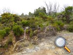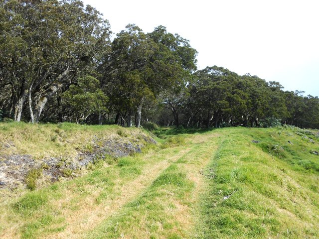 La randonnée débute au grand parking utilisé par les fidèles pour certaines grandes messes du mois de mai rassemblant des milliers de catholiques. Redescendre de quelques mètres la route pour entamer la sinueuses Route Forestière des 1800. La balade est de tout repos sur la large piste recouverte d'herbe rase mais surtout de petits cailloux (Photo 1). Elle est bordée d'ajoncs d'Europe, de fougères, de branles verts mais aussi de carcasses de tamarins brûlés lors des incendies criminels (Photo 2). On peut observer quelques panoramas sur l'Océan en direction de Saint-Paul ou de l'Ermitage (Photo 3). Quelques vaches paissent parfois dans les brandes à la recherche d'un peu d'herbe. On passe une vingtaine de ravines très visibles sur la carte et dont certaines sont encaissées dans de profondes failles abruptes. Il est possible d'en longer quelques une à la recherche de bassins, crevasses, falaises et même cascades après les pluies. Ne pas manquer la Ravine de Saint-Gilles car c'est le repère pour trouver le sentier oublié qui montera en ligne presque droite jusqu'au rempart de Mafate (voir § ci-dessous). Ne pas dépasser le radier suivant et chercher à gauche la trace peu utilisée. Le sentier est très étroit, invisible sur les basaltes (Photo 4) ou sur les cailloux et comporte plus de traces de sabots que de chaussures de randonnée. Des rubalises de différentes couleurs sont installées sur les branches au début de la montée. On les retrouve de moins en moins nombreuses jusqu'à disparaître comme si les baliseurs avaient abandonné avant de rejoindre la piste du Maïdo ! Il chemine à distance presque égale entre les deux ravines à sec encombrées de milliers de branles ou tamarins brûlés (Photo 5). Plus haut, seule la Ravine de Saint-Gilles demeure sur la gauche. Si la végétation est trop dense, bien penser à reprendre le même axe à la sortie de l'obstacle. La montée varie en environnement tout au long du parcours mais pas la pente qui est constante (Photo 6). Elle devient pourtant plus forte à l'approche d'un petit piton qui domine dans la végétation (Photo 8). Il faut s'en approcher en suivant la trace jusqu'à un rocher caractéristique avant d'entamer la forte pente d'une vingtaine de mètres en longeant le cratère (Photo 9). Le sentier qui montait cette forte pente a souffert de l'envahissement de la végétation. On se retrouve au sommet rocheux avant de rechercher à nouveau la trace (Photo 10). Poursuivre vers l'est et traverser la ravine en amont avant de grimper une arête rocheuse mais cet écueil est sans danger. En cas de difficulté, rejoindre la ravine et la suivre au plus facile en cherchant les parties du sol les moins encombrées. Ce hors sentier n'est pas de l'aventure si on garde à l'esprit qu'il ne faut pas trop s'éloigner du fond de la ravine. La remontée se termine à la piste de la Glacière. Partir sur la gauche et emprunter un peu plus loin le sentier menant au Piton de la Ravine Saint-Gilles et au sentier de Bord (Photo 11). Les difficultés sont finies et le plaisir commence ici en regardant plus bas vers le Cirque de Mafate (Photo 12). La descente caillouteuse donne tous les 20 mètres un point d'observation nouveau (Photo 13). Plus on se rapproche du Maïdo et plus on devine le nord du cirque vers Roche Plate et la Crête des Orangers (Photo 14). Attention aux fissures indiquées par des panneaux et surtout celles qui ne le sont pas en bordure de rempart où le poids d'un randonneur peut les faire glisser 1000 m plus bas (Photo 15). Poursuivre vers le Maïdo en descente constante sur des millions de cailloux de toutes tailles, des roches ou plus rarement de la terre (Photo 16). On parvient, les chevilles en feu, au parking du Maïdo et son grand belvédère pour des panoramas déjà observés dans la descente et laissés aux touristes non marcheurs (Photo 17). Longer le belvédère jusqu'au point de vue sur les Orangers (Photo 18) et entamer une nouvelle descente caillouteuse vers le nord (Photo 19). Marcher dans les ajoncs et sur des parties terreuses jusqu'à la clôture puis au départ du sentier de Roche Plate (Photo 20). Avant de continuer, jeter un œil sur le parcours qui plonge vers la Brèche pour de nouveaux panoramas sur le Roche Ecrite ou le Cimendef (Photo 21). Poursuivre plein nord et longer le rempart (Photo 22) jusqu'aux abords du Piton des Orangers qu'on devine mieux que le Piton de la Ravine Saint-Gilles (Photo 23). Le sentier est très agréable sous les tamarins et sur la pelouse tout en bénéficiant de nouveaux panoramas sur Mafate. Le pare-feu Tête Dure est facile à trouver car le sentier coupe le rond-point qui termine la piste qui le traverse (Photo 25). Redescendre dans les herbes par la piste ou ses raccourcis jusqu'à une retenue d'eau sur la droite, cachée par les tamarins, très nombreux dans la zone. On parvient à un immense rond-point doté d'une bouche à incendie en son centre. Elle est destinée à ravitailler les hélicoptères et citernes de pompiers en cas d'incendie dans la région. Une piste herbeuse part sur la gauche et serpente sous les arbres jusqu'à la route du Maïdo. La suivre sans effort est un vrai plaisir, surtout que la fin de la boucle approche (Photo 26). A la route, prendre à gauche et rejoindre le point de départ en longeant les lacets ou plutôt en les coupant par les raccourcis créés à force de passages. Ne pas manquer, avant d'ôter les chaussures, le petit détour vers la Caverne du Maïdo située sous une cascade à sec du Bras de la Ravine Divon (Photo 27). La grotte est une longue cavité sous roche, peu profonde et qui abrite un des 5000 oratoires de l'Île (Photo 28). La ravine, qu'on peut suivre jusqu'à la route, comporte quelques petits bassins remplis après la pluie.