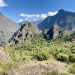 La randonnée débute à Aurère où on aura séjourné durant la nuit en venant du Bélier par le Sentier Augustave ou le Sentier Scout par exemple. Une petite pente amène tout droit à Bord Bazar où une halte s'impose pour bénéficier des superbes panoramas sur le cirque. On commence par le Piton Diable qu'aucun sentier ne dessert même si on devine des parties planes qui auraient pu accueillir un îlet (Photo 1). La descente, rocailleuse à flanc de la falaise abrupte des pentes du Piton Cabris, a souvent été creusée à même la pierre. Il faut prendre tout son temps pour admirer ce côté sauvage du cirque où les pitons pointus et déchiquetés se succèdent (Photo 3). On domine le Bras d'Oussy coulant au fond de son canyon qu'on atteindra rapidement en fin de descente (Photo 4). Le sentier, le plus souvent en descente, présente tout de même quelques rares portions plates (Photo 5). On longe une zone particulièrement vertigineuse où fort heureusement, des rambardes sont installées pour sécuriser (Photo 6). On peut repérer, en regardant sur la gauche, le Piton des Calumets et les cases de Grand Place qu'on atteindra dans deux heures. Après cette partie délicate, le sentier entame sa descente vers le Bras d'Oussy à partir de l'Îlet Fougères avec de belles vues sur la vallée de la Rivière des Galets (Photo 7). Plus bas, on domine d'ailleurs la rivière à partir de points vertigineux mais splendides (Photo 9). On s'approche assez vite à la passerelle qu'on aperçoit 200 mètres avant d'y parvenir et l'on peut admirer le cirque formé par le Bras d'Oussy qui s'est frayé un chemin au milieu des rochers (Photo 11). Le sentier s'élève doucement à partir de l'ouvrage qui permet d'observer l'impressionnante gorge étroite du bras qui termine sa course ici en se jetant dans la Rivière des Galets. Une imposante falaise semble barrer le chemin mais le sentier, étroit et très vertigineux, creusé à même la falaise permet de passer l'écueil sans danger grâce aux mains courantes, rambardes et passerelle (Photo 12). Plus loin, il monte à l'assaut du Piton Tortue pour rejoindre un petit col au-dessus de la Rivière des Galets sur un terrain aride et sec (Photo 13). A partir du col situé à 522 m d'altitude, le sentier est soit plat soit en descente légère et ne comporte aucune difficulté. On voit très bien l'îlet des Lataniers avant de rencontrer le sentier qui part à droite pour le rejoindre (Photo 14). Dans la descente, un sentier sur la droite amène au vieux cimetière dont le détour ne prend que 5 minutes. Le sentier oblique sur la gauche et suit de loin la Ravine Fontaine en direction de Grand Place. Laisser à droite le sentier de Cayenne. Un escalier bordé de pierres sèches marque symboliquement le début du très vaste Îlet de Grand Place (Photo 15). Il faut franchir quelques lacets constitués de hautes marches en pierre pour atteindre l'école de l'îlet (Photo 17). Laisser toutes les traces partant à droite et arriver au gîte des Bougainvilliers pour aller saluer la statue du facteur de Mafate. Un peu plus loin, seuls les habitués trouveront sur la gauche le départ vers l'Îlet Moutou dont le sentier serpente entre le Piton Papangue et le Piton Canal. On a depuis déjà quelques temps de belles vues du très pointu Piton des Calumets. Il semble très aigu mais se monte presque sans effort si on n'a pas le vertige. Au prochain croisement, il est possible de partir à droite vers Grand Place les Hauts mais le sentier de gauche contourne le Piton Carré par le nord en donnant des vues sur Aurère et le Piton Cabris. Bien profiter des portions plates sous les filaos car le relief changera très bientôt. En effet, après un oratoire sur la gauche, le sentier plonge sur un sol rocheux et terreux vers le Bras d'Oussy. On voit très bien le torrent couler dans le bas ainsi que le sentier qu'on empruntera après le gué. L'effort est important pour la descente comme pour la montée mais on atteint l'îlet à Bourse pour quelques minutes de repos (Photo 18). Après avoir franchi une nouvelle passerelle (Photo 19), on entame une descente sous les filaos en direction de la Grande Ravine. La descente s'effectue en forte descente comportant lacets, escaliers en roche, câbles, toujours en bordure de ravin (Photo 20). On aperçoit déjà Aurère et le Piton Cabris, fin de cette boucle (Photo 21). Franchir cette fois la Grande Ravine sur une passerelle étroite qui oscille au moindre mouvement (Photo 22) avant d'entamer la montée en lacets courts sur un sentier terreux (Photo 23). On rejoint très facilement la Plaque et l'îlet à Malheur sur un sentier à l'ombre des grands filaos (Photo 24). Le village fleuri est une invitation à la halte mais la boucle est bientôt terminée (Photo 25). En fonction de la durée du séjour dans le cirque, il est possible de repartir sur la droite par le Sentier Scout ou vers la gauche pour traverser l'Îlet à Malheur. Après une visite de l'îlet, descendre sur les grosses pierres dans les chouchous vers le Bras Bémale qu'on traverse sur une passerelle (Photo 26) qui domine le canyon d'une cinquantaine de mètres (Photo 27). La nième et dernière montée de la journée débute sous de nouveaux filaos par des escaliers en pierre. La pente est forte et caillouteuse à travers les chouchous. La fin de la boucle s'effectue dans le vaste îlet d'Aurère où l'on retrouve certainement le gîte loué la veille.