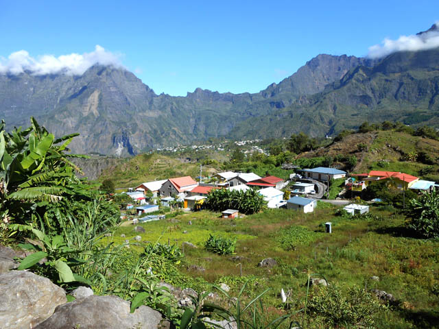 Devant soi, c'est toute la partie Ouest du cirque qui passe par la Fenêtre des Makes, le Petit et le Grand Bénare, le Taïbit, les Salazes, le Gros Morne et le Piton des Neiges.