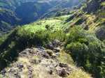 Voici une courte boucle empruntant à nouveau un tronçon du sentier du Piton Morel qui domine le village de Palmiste Rouge, déjà utilisé pour visiter ce village encaissé coincé entre la route de Cilaos et la Ravine des Calumets. On retrouve également cette ravine beaucoup plus en amont avec moins d'eau mais des gorges spectaculaires. L'ascension du Piton Morel est la seule difficulté (en montée) de la journée qui ne dépasse guère une heure. Le sentier un peu raide qui chemine dans une végétation manquant d'eau pour se développer, ne permet pas d'imaginer les beautés qu'on trouvera plus loin après un court mais très fort raidillon en fin de montée. Depuis le petit col qui franchit l'arête et rejoint Gueule Rouge, on est ébloui par le panorama qui s'offre à nos yeux, partant de la Fenêtre des Makes pour se terminer par les pentes du Coteau Kerveguen (Voir § ci-dessous). Perché sur le rocher qui jouxte le col, on a envie de s'installer longuement ici pour profiter du merveilleux spectacle. Seul le Grand Piton bouche la vue de quelques degrés pour obtenir une vision à 360°. La fin de la boucle ne manque pas de charme lors de la traversée du Plateau de Gueule Rouge recouvert de champs de lentilles même si le passage par la route est inévitable. Le difficile Sentier de Gueule Rouge s'effectue en descente et les efforts à fournir sont moindres qu'en sens inverse. Enfin, la dernière partie comporte toujours cet étroit et impressionnant canyon vertical de Cap Blanc où le bruit de l'eau courante est démultiplié, laissant croire au passage d'une importante rivière.