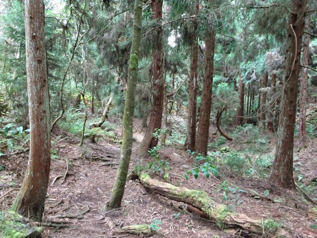 La randonnée débute à une aire de pique-nique avant la fin de la route mais peut également commencer au rond-point ou au début de la piste du Bois de Nèfles. Prendre la route en fonction et regagner le début du sentier Françoise Francia (voir carte). Le sentier est tout d'abord taillé à la machette dans les longues vignes marronnes qui caressent le visage de ses épines. Heureusement, ce tunnel végétal dure peu. Le sentier monte en ligne presque droite en lisière de forêt de grands cryptomerias aux racines apparentes et souvent glissantes par temps humide (Photo 1). Les longoses cachent à peu près tout le sous-bois et il est impossible de marcher entre les arbres (Photo 2). La montée est régulière, parfois assez forte et s'assagit assez peu souvent (Photo 3). Sur la droite, ce sont quelques bois de couleurs qui tentent de survivre au milieu des autres pestes classiques de cette région fraîche et humide, dont principalement de la vigne marronne (Photo 4). Les cryptomerias cessent un moment mais reviennent tout aussi vite. Ils disparaissent enfin à l'approche du sentier Cambour et les bois de couleurs les remplacent agréablement. Au prochain croisement, prendre à droite le beaucoup plus agréable sentier Cambour. Malgré les longoses dont on ne se débarrassera pas tout au long de la boucle, les tamarins, tous aussi beaux les uns que les autres bordent le sentier, debout, couchés ou seulement penchés (Photo 6). On a même la chance parfois de marcher sur de l'herbe fraiche (Photo 7). Ce superbe sentier ne dure hélas que très peu de temps. On arrive en quelques minutes dans un lacet de la Route Forestière Oméga (Photo 8). Partir vers la gauche et entamer les trois kilomètres de montée. Le paysage change peu mais la large piste permet de mieux apprécier les abords. Les tamarins sont les plus nombreux de chaque côté (Photo 10). L'herbe qui recouvre la piste n'est pas toujours agréable après une pluie mais, à l'inverse, c'est un plaisir avec un soleil visible ou caché par la brume (Photo 11). Il est fréquent de rencontrer des troupeaux ou des bêtes esseulées broutant sur la piste. Après un kilomètre, les fougères envahissent de plus en plus les abords (Photo 12). Sur la droite, le sentier déjà envahi par les fougères qui représentait la ligne des Seize Cents, est devenu totalement inextricable (Photo 13). Il permettait, sur la première mouture de cette fiche, de regagner le sentier Louis Emile sans remonter le très long dernier lacet de la RF Oméga. C'est donc parti pour deux longs kilomètres de piste herbeuse, heureusement très reposante, tant par la pente que par les paysages alentour. Ces centaines de tamarins, tous debout contrairement à ceux dans les forêts plus au nord, sont un régal pour les yeux (Photo 14). On passe à moins de 200 mètres du rempart de Mafate sans le voir en raison justement de tous ces tamarins. En arrivant à 1750 m, guetter sur la droite de la piste le départ du sentier Louis Emile. On le remarque au triangle et ses deux petits ronds chers aux vététistes. Comme souvent répété sur ce site qui n'encourage jamais à transgresser une règle : tant qu'on continuera à voir des traces de pneus sur les sentiers de randonnée, aucune honte à descendre l'un d'entre eux. En revanche, on considère qu'ils sont toujours prioritaires. Dès qu'on entend le bruit du vélo malmené par la vitesse et les sauts de plusieurs mètres, on se met bien sagement sur le bord en attendant que ces sportifs hors du commun aient terminé leurs exploits. Le sentier, comme les premières mètres du sentier Françoise Francia, ne paye pas de mine avec ses fougères de tous côtés (Photo 15). En quelques mètres, elles disparaissent et la marche s'effectue sur un sentier de très bonne qualité, un peu étroit mais propre (Photo 16). Il s'élargit graduellement et les premières traces de pneus confirment qu'on est bien chez les vététistes (Photo 17). Les tamarins deviennent de moins en moins nombreux (Photo 18). La vigne prend doucement possession des abords (Photo 19). On va à la rencontre de ce magnifique bambou endémique, le calumet, qui lui également se fera vite dévorer par la vigne (Photo 20). Ne pas manquer, au passage, ce tamarin tombé au sol et dont une grosse branche a pris racine au sol, créant une très originale arche végétale (Photo 21). On n'en quitte pas pour autant les calumets qui poussent parmi les derniers tamarins (Photo 22). Avant l'arrivée des premiers cryptomerias, un autre tamarin plus que centenaire se penche sur le flanc en bordure de sentier (Photo 23). Puis les premiers conifères se présentent sur des pentes parfois très fortes où il faut prendre garde de ne pas glisser (Photo 24). On retrouve également les racines mais la traversée s'effectue sans problème. Plus bas, le sentier se transforme petit à petit par une piste propre et large qui comporte également de belles pentes parfois glissantes. On parvient à la Route des Cryptomerias dans une jungle de vigne marronne (Photo 27). La partie la moins agréable de la boucle commence en longeant cette route désormais tellement envahie de pestes dont les vignes ont dévoré 30% de la bande de roulement.