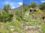La randonnée débute à quelques mètres du Petit Bras de la Ravine Divon où des places de stationnement attendent les randonneurs empruntant le sentier de Roche Plate. On peut tenter d'arriver très tôt et profiter du lever de soleil depuis le long belvédère du Maïdo avant de mettre le sac sur le dos (Photo 1). Entamer la courte montée de 70 m vers l'entrée de Mafate en traversant la planèze sur de larges plaques basaltiques bordées de branles verts et d'ajoncs d'Europe (Photo 2). Passer la porte grillagée et entamer pour deux bonnes heures la très longue descente jusqu'aux Orangers. On distingue déjà, à travers les arbustes calcinés du dernier incendie, les deux premiers îlets à l'ombre de la Crête des Orangers (Photo 3). Le début de la descente s'effectue sur de grosses pierres créant de hautes marches. Le terrain s'assagit un peu plus loin pour épouser longuement la courbe de niveau (Photo 4). Quelques passages délicats abîmés par des éboulis dus au feu sont sécurisés de solides câbles d'acier. Plus on avance et plus le sentier descend par des lacets toujours plus nombreux (Photo 5). On peut effectuer un court détour pour un point de vue sur le sud du cirque ou garder cet écart pour le retour. A partir d'une croix sur la droite, la pente s'accentue encore, passe par l'héliport sommaire pour arriver sur un rein qui longe la rive gauche de la Ravine de la Brèche. Plus bas, le sentier traverse la ravine à sec et on arrive très vite à la Brèche. Profiter du superbe paysage sur une grande partie du cirque depuis les escaliers en béton (Photo 6). Peu d'ombre pour une halte près de la haute aiguille basaltique de la Brèche (Photo 7). Poursuivre en partant à gauche pour terminer la descente en rejoignant la Ravine de la Brèche sur des escaliers bétonnés, puis un sol assez caillouteux qui descend en lacets serrés mais ombragés (Photo 8). Le sentier passe tantôt dans la ravine, tantôt la longe. Le fond est très rocheux mais elle ne coule que rarement (Photo 9). On rejoint ensuite la Ravine Grand-Mère dans une vallée étroite. On arrive enfin, après 1000 m de descente ininterrompue, aux premières zones habitées en quittant le couvert de la verdure (Photo 10). La première case en tôle colorée appartient à Paul, un sculpteur un peu ermite exposant certaines de ses œuvres sur le bord du sentier (Photo 11). Art Mafate et une flèche peinte sur une pierre plate sont une invitation à emprunter le sentier menant à la case. Un peu plus loin un panneau indique le cimetière. Prendre le sentier de gauche qui monte légèrement à travers les roches en offrant de beaux panoramas (Photo 12). Le petit cimetière, entouré d'un mur de pierres sèches, abrite quelques tombes très bien entretenues (Photo 13). Reprendre la direction des Orangers en longeant la ravine ou en marchant dans l'étroite vallée bordée de filaos. Une source sur la gauche, indiquée sur la carte, permet de refaire le plein de boisson fraîche et claire. Plus loin, c'est la Ravine du Maïdo que traverse le sentier avant d'entreprendre une courte montée vers les habitations des Orangers. Les lacets, souvent en escaliers, permettent de s'élever rapidement et de profiter de larges vues sur le chemin venant d'être parcouru depuis le Maïdo qu'on aperçoit au loin (Photo 14). Les marches cessent bientôt en arrivant au plateau où attend une table de pique-nique en plein soleil (Photo 15). On devine les premières cases des Orangers ainsi que la Crête d'Aurère et Dos d'Ane à l'horizon (Photo 16). Passer devant une grande citerne d'eau et rejoindre le Plateau l'Ecole. On aperçoit, de l'autre côté de la Ravine, le Plateau l'Epicerie qu'on rejoindra bien vite par les escaliers que l'on devine dans la végétation (Photo 17). Le plateau est une vaste esplanade où sont répartis habitations, école, dispensaire et la chapelle (Photo 18). La chapelle dédiée au Père Brattier est la dernière du cirque à avoir reçu sa cloche (voir § ci-dessous – Photo 19). A l'arrière, le ravin est impressionnant en direction de la Ravine Grand-Mère. D'ici, on profite de magnifiques panoramas sur la vallée et en direction du Maïdo. Revenir sur ses pas puis entamer la descente vers la petite ravine qui sépare les deux îlets bas. La jonction avec le GRR2 est rapide. Prendre à gauche et remonter quelques marches à travers les cultures (Photo 20). On se retrouve à l'altitude du Plateau l'Ecole au milieu de quelques habitations (Photo 21). Se lancer alors à l'assaut du sentier remontant vers les Orangers Remparts. Plus on monte et plus les paysages sauvages sur la vallée et le canyon de la Ravine des Orangers se multiplient (Photo 22). Deux sentiers permettent de rejoindre l'îlet isolé. Prendre à droite au premier croisement et descendre assez violemment vers une ravine affluent de la Ravine des Orangers. La remontée est assez raide sur de nombreuses marches (Photo 23). On se retrouve très vite à la hauteur des deux îlets du bas en profitant toujours du panorama (Photo 24). Il faut encore monter pour rejoindre les premières cases (Photo 25). Le sentier longe les habitations et se termine à la jonction de l'autre sentier, près de 100 m au-dessus des deux autres îlets (Photo 26). Une halte au petit bar-gîte pour déguster un jus de fruit permet de faire vivre le petit établissement et de profiter du paysage depuis la terrasse couverte. Partir ensuite sur l'autre sentier qui franchit la ravine et remonte un peu dans les grévilliers avant d'entreprendre une forte descente (Photo 27). Le sentier, bien entretenu par les nombreux passages, permet d'apprécier une dernière fois les magnifiques paysages de cette région des Orangers (Photo 28). Une fois parvenu au Plateau l'Epicerie, prendre à droite puis entreprendre le retour par le même itinéraire sans oublier de faire le plein d'eau à la source de la Ravine Grand-Mère avant d'affronter la rude montée du Maïdo.