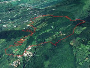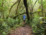 La randonnée peut débuter n’importe où sur le circuit. Elle est proposée ici depuis la RF 36 au plus près du chemin qui commence 500 m après la piste menant au pont de bois, là où la route a presque totalement disparu pour être remplacée par le GRR2. Le petit panneau rouge se remarque de loin. Il invite à emprunter le chemin ombragé s'enfonçant dans la verdure (Photo 1). Plus loin, il traverse le Bras Plat qui offre de belles portions verdoyantes de mousse. Il oblique ensuite vers la gauche près d'une habitation. Ne pas manquer, près des serres 100 m plus loin, le sentier qui pénètre dans les plantations de vanille et longe une serre totalement réservée à cette culture (Photo 2). Obliquer à droite sur un magnifique sentier qui domine le canyon de la Ravine de Basse Vallée à travers de superbes arbres. La traversée de la ravine incite à y revenir pour découvrir grottes et bassins bordés de basaltes couverts de mousse (Photo 3). Le sentier, herbeux, pénètre ensuite dans les champs de canne avant de se rapprocher des premières habitations de Matouta. Traverser le village fleuri et le quitter en partant sur la droite sur le Chemin Matouta. Emprunter la prochaine petite route à droite, le Chemin Simono, qui rejoint par de nombreux lacets le pied du Piton Bernard. On chemine agréablement entre les deux murs de canne à sucre qui n'arrivent jamais à boucher le paysage. On a parfois de belles vues sur le Piton Bernard (Photo 4) tout en marchant sur une pente faible. De l'autre côté, c'est l'océan et une longue côte blanchie par les vagues à Vincendo (Photo 5). De très nombreuses pistes partent dans tous les sens et représentent de superbes raccourcis sur la carte. Beaucoup d'entre elles ont été testées lors de la boucle. Elles se finissent généralement en cul de sac au milieu des cannes et il est inutile de les tenter. Certaines sont trop envahies par la végétation pour y marcher sereinement, surtout lorsqu'elles sont en propriété privée. Le GPS, peu utile peut tout de même rendre service pour éviter de marcher plus longuement que prévu. La pente de la route s'accentue. Plus on monte et plus on se rapproche du Piton Bernard. Ne pas manquer un court écart pour grimper jusqu'à l'aire de décollage des parapentistes et bénéficier d'un très large panorama sur la côte (Photo 6). La route effectue plus loin un court lacet avant de profiter des points de vue sur la Vallée Heureuse (Photo 7). Sur la gauche, une trouée dans les goyaviers accueille le départ d'un sentier gagnant le sommet du Piton Bernard. Un autre, plus discret, part à l'assaut du flanc par la gauche. S'il permet de grimper à son sommet, il reste dangereux car, sans doute tracé par des braconniers, il comporte des centaines de branches taillées en pointe à 30 cm du sol. La moindre chute pourrait ainsi transpercer les parties du corps en contact. Il présente l'avantage de rencontrer d'importantes plantations de vanille abandonnée et jamais fécondée. Il est préférable de se concentrer sur celui qui frôle une installation de l'Institut de Physique du Globe de Paris alimentée par un vieux panneau solaire (Photo 8). Légèrement envahi par les sabres, il traverse cette fois d'anciennes plantations de curcuma avant de parvenir au sommet et découvrir de magnifiques arbres tous aussi biscornus les uns que les autres (Photo 9). A noter la noirceur des achatines vivant en ces lieux. Reprendre la montée vers Jacques Payet avec de la canne à sucre de tous côtés (Photo 10). Une fois passé, le piton Bernard paraît plus imposant que lorsqu'on l'effleurait en dominant la vallée du Bras Creux (Photo 12). Un raccourci par piste, qui semble être une ancienne route, permet d'éviter 3 lacets de la RD37 (Photo 13). Cette piste s'emprunte à partir du point 499 de la carte après avoir franchi le Bras Panon et une réserve d'eau sur la gauche. Il se termine à la RD37 en tournant à gauche à la première route rencontrée. Il faut ensuite emprunter la demi-douzaine de lacets qui se terminent au village de Jacques Payet en prenant garde à la circulation. Suivre le panneau du Gîte des Randonneurs et repérer le début du sentier Jacques Payet près de la dernière case du village. Ce superbe sentier, un peu glissant et bordé de goyaviers, monte doucement vers les Rampes de Basse Vallée (Photo 14). Il traverse tout d'abord quelques cultures et vergers. Il comporte des parties herbeuses mais surtout glissantes où les marches évitent de déraper (Photo 15). Une bonne partie s'effectue entre des haies de goyaviers (Photo 16). Un passage délicat se situe au franchissement du Bras Panon sur des cailloux glissants ; attention à ce que les marmailles ne courent pas. Entamer la courte descente vers le gîte de Basse Vallée par quelques lacets étroits mais de bonne qualité (Photo 17). La pente est assez forte et les lacets nombreux à travers une belle végétation (Photo 18). On traverse le Bras Creux à quelques mètres de sa naissance puis la Ravine de Basse Vallée, ses gros rochers, sa cascade à sec (Photo 19) et sa grotte à quelques mètres en aval. La courte portion qui sépare la ravine du gîte est superbe et bien indiquée sur la rive de la ravine rocheuse (Photo 20). Elle comporte une longue échelle très stable qui permet de passer une haute barre rocheuse (Photo 21). Le sentier traverse aussitôt une jolie forêt de cryptomerias aux troncs moussus (Photo 22). On parvient en quelques minutes aux bâtiments entourant le gîte de Basse Vallée situé sur la gauche. Partir à droite puis longer les jardins et habitations. Le GRR2 se retrouve facilement au croisement de la route et de la Piste Forestière des Camphriers, tout près du petit pont en aval du gîte (Photo 23). Ce tronçon tout en descente, glissant parfois sur les racines (Photo 24), ne présente aucune véritable difficulté excepté quelques cailloux de lave qui dépassent sur le sentier et de cour