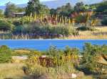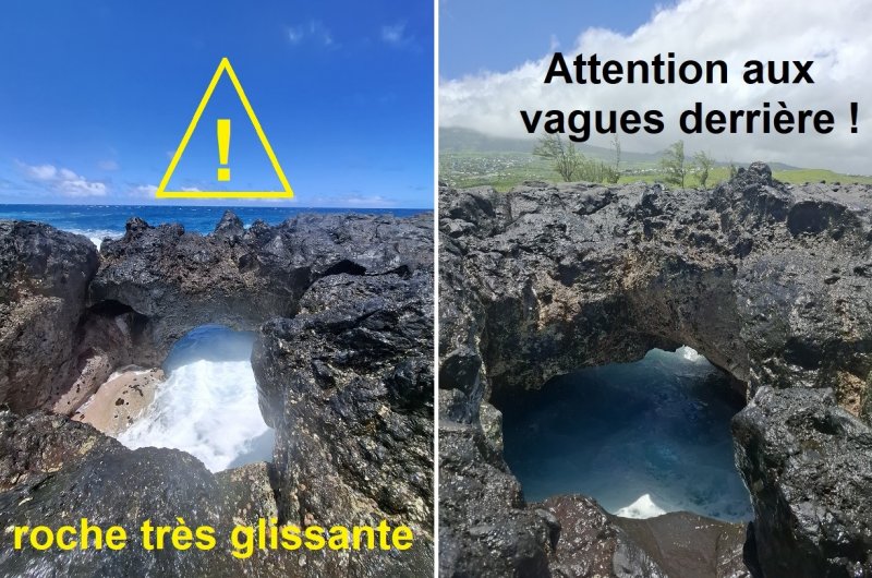 La randonnée débute ici côté sel mais peut aussi commencer dans le village, plus haut, côté sucre. Contrairement à de nombreuses zones touristiques, celle-ci n'est pas fermée de hauts grillages et on peut tout à loisir longer les bassins de recueil du sel avant de descendre visiter le petit musée. Un panneau explicatif donne quelques indications sur la région et sur le sel (Photo 1). Le musée est un petit bâtiment qui se visite rapidement, s'il est ouvert au moment de la randonnée (Photo 2). En amont, des bacs de décantation permettent de recueillir quelques quintaux de sel (Photo 3) alors que la surface originelle, recouverte de terre et d'herbe, pourrait en produire des tonnes (Photo 4). A quelques mètres de là, les vagues se fracassent sur les rochers de la Pointe de Bretagne et la visite du lieu ne prend que 10 minutes. On peut ainsi s'approcher du bassin également utilisé pour le recueil de l'eau de mer et la baignade. Plusieurs grottes, failles ou gouffres se remarquent aux vagues qui s'y engouffrent en créant de hauts geysers d'eau salée (Photo 5). Un four à chaux émerge de la savane constituée de hautes herbes jaunes. La boucle commence sur la petite route qui passe sous la RN1a, rejoint l'abri bus en bois avant d'emprunter le sentier qui part au plus près de l'abri. Ce trajet est une véritable piste bordée de hautes herbes plus ou moins jaunes en fonction de la saison. L'allée, baptisée le Chemin des Découvertes, mène à quelques engins vieillissants entourés de chocas ou aloé véra (Photo 6). La piste comporte quelques tronçons constitués de marches en pierre (Photo 7). On s'approche rapidement de la Route des Tamarins qui se franchit par un tunnel très fréquenté après avoir contourné un long réservoir de recueil des eaux pluviales (Photo 8). Longer la piste bétonnée ou les sentiers de raccourcis. La zone est un peu bruyante à cause des véhicules lancés à vive allure mais elle est bien fleurie et verdoyante pour la région (Photo 9). Une haute sculpture colorée trône dans l'aire de pique-nique (Photo 10). Flâner dans l'aire de repos puis rejoindre l'escalier qui monte en direction de la Rue du Musée (Photo 11). Partir à droite sur cette route fréquentée puis poursuivre à gauche sur le Chemin de la Diagonale pour se rapprocher du musée pour quelques heures de visite. Si l'établissement est fermé, repérer les horaires pour une prochaine fois. S'il accueille des visiteurs, visiter les vestiges de machines ou les énormes poulies et roues dentées de l'ancienne usine (Photo 12 et 13). A l'intérieur, la visite, très intéressante peut prendre deux heures (Photo 14). Repartir vers l'aire de pique-nique impossible à manquer à son balcon d'observation sur la région. Il est possible de descendre directement avant le muret situé sur la gauche. On retrouve les zones fleuries ou arborées nécessitant d'abondants arrosages (Photo 15). Des emplacements abrités attendent les pique-niqueurs qui bénéficient de belles vues sur la mer ou la saline (Photo 16). Partir à droite après le tunnel, longer la piste et emprunter le premier chemin vers la gauche en direction de la mer (Photo 17). L'ancien élevage d'autruches disparu depuis de nombreuses années est désormais remplacé par de grands champs d'ananas (Photo 18). Emprunter, plus bas, une nouvelle allée partant vers la droite. Elle est bordée de chaque côté de grosses touffes d'aloé véra (Photo 19). Rejoindre une large piste en terre qui mène à la deuxième aire de pique-nique permettant également de beaux points de vue (Photo 20). Ici, moins d'arbres qu'en amont pour procurer de l'ombre durant les repas (Photo 21). On devine les roches du piton à quelques mètres de là tout en profitant des vues sur la Baie de Saint-Paul (Photo 22). Le regard porte jusqu'au Port et on a sous les yeux la totalité de la saline de la Pointe au Sel (Photo 23). Se rapprocher du Piton des Roches Tendres par un court sentier. Contrairement à leur nom, ces roches très dures peuvent s'escalader pour s'élever un peu et profiter des panoramas sans branches d'arbres pour gêner le regard (Photo 24). Revenir sur ses pas et prendre le petit sentier qui entame la descente du retour dans les hautes herbes qui jaunissent vite dès les premières chaleurs revenues (Photo 25). Tout le piton est envahi par les oreilles de lion ou pompon soldat (Leonotis nepetifolia), ces chardons caractéristiques (Photo 26). Longer les falaises d'une petite ravine de quelques centaines de mètres prenant sa sources au Roches Tendres mais qui a réussi en quelques millénaires à creuser une profonde vallée rocheuse (Photo 27). On rejoint, toujours sans effort, la piste caillouteuse parallèle à l'océan qui fait un coude vers la droite (Photo 28). On retrouve rapidement la piste empruntée au début de la boucle et l'abri bus le long de la route. Le musée du Sel est de l'autre côté de l'ancienne route nationale menant à l'Etang Salé. Rejoindre le parking ne prend que quelques minutes. La hauteur de l'herbe peut parfois empêcher de visiter le four à chaux de la Pointe au Sel dépassant de la savane herbeuse.