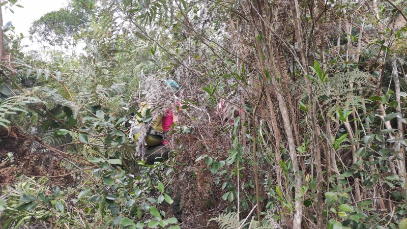 La randonnée débute ici à Grand Place sans prévoir de moyen d'y arriver. Le mieux est d'y venir la veille en partant du Maïdo, de Deux Bras ou du Col des Bœufs par le sentier Scout et de profiter d'un des gîtes, car effectuer la distance jusqu'à Grand Place ainsi que la montée au Calumet serait trop difficile dans une journée. Quel que soit le gîte choisi à Grand Place, le trajet tout en montée jusqu'au départ du sentier situé à deux pas du col et du point de vue vers la Roche Ancrée est assez facile et permet de bien s'échauffer. La montée est agréable et jamais difficile au milieu des habitations clairsemées et des petits champs. On a sous les yeux le piton qui semble une véritable pointe (Photo 1). En se retournant, c'est tout Grand Place et les pitons qui l'entourent qui s'offrent en paysage. C'est déjà impressionnant mais rien comparé à ce qu'on aura au sommet, 800 m plus haut. En fin de montée, on s'approche d'un grand bois de filaos qui occupe le sommet de la colline (Photo 2). A l'approche du col, repérer le sentier qui part à gauche. Avant de l'emprunter, on peut poursuivre sur 50 mètres pour aller profiter du paysage vers le Bronchard et Roche Plate. Mais là aussi, il sera plus impressionnant depuis là-haut. Partir sur le sentier déjà repéré et marcher en direction de la barre rocheuse qu'on a devant soi à 500 mètres (Photo 3). Le sentier d'approche de cette barre comporte surtout des parties plates dans les fougères, les galaberts ou les filaos (Photo 4). Plus loin, on longe un tuyau qui serpente sous les filaos (Photo 5). A l'approche de ce passage rocheux qui va demander un peu d'efforts, on se régale déjà à l'idée de marcher sur cette crête qu'on aperçoit sur la gauche du piton (Photo 6). Le Piton Cabris qui domine Aurère et le Piton Carré au-dessus de Grand Place commencent à rapetisser à la vue (Photo 7). On repère très bien le passage entre les pitons Papangues et Canal pour rejoindre l'îlet Moutou (Photo 8). Mais la montée se poursuit car il reste peu de distance mais encore beaucoup de temps de marche. C'en est bientôt fini du sentier dans les fougères et sous les filaos (Photo 9). Le tuyau commence à faire un angle de plus de 45° sous les roches de plus en plus présentes (Photo 10). A certains endroits, il est presque vertical et des sangles fixées aux arbres sont fort utiles pour s'aider avec les mains (Photo 11). Choisir son itinéraire avec soin. On se retrouve sur les rochers pour entamer une partie assez pentue en longeant la Ravine des Calumets qu'on domine sur la gauche. La pente est assez sérieuse sur un sentier étroit mais assez facile à suivre (Photo 12). Les goyaviers se font de plus en plus nombreux mais on ne cherche toujours pas le sentier des yeux (Photo 13). Plus loin, on coupe la ravine avant d'entamer une nouvelle montée qui mènera au plateau. On chemine ensuite dans les goyaviers puis en sous-bois entre le rempart, les grillages ou les ravines. Plusieurs sentiers permettent de s'égarer facilement, d'où l'utilité du guide habitué à ce circuit. Quelques cairns rassurent en cas de doute. On traverse ainsi une bonne partie du plateau et on semble s'éloigner du Piton des Calumets. A l'aplomb du col, avant d'arriver à la Ravine Chouchou, le sentier oblique sur la droite. Une courte montée dans les fougères, branles verts et arbustes amène au rempart au-dessus duquel il vaut mieux ne pas se pencher. De ce balcon naturel, Grand Place paraît très lointaine entourée de ses pitons (Photo 14). De l'autre côté, on domine Roche Plate et le Maïdo (Photo 15). Au pied, on distingue les prairies entourées de filaos mais il n'y a plus les cerfs et biches qui y paissaient (Photo 16). Vers le Bronchard, on aperçoit la grande cascade de la Ravine Cimandal et la Rivière des Galets (Photo 18). Pour plus de liberté de mouvement, il est conseillé de se munir de boisson et de laisser le sac à dos au col. A partir de ce col, le sentier est toujours bien visible dans les branles, souvent très proche du précipice vers le sud. Il se met à grimper de plus en plus et devient si étroit sur l'arête coupante qu'on avance à l'instinct (Photo 19). Plus on s'élève et plus le Morne de Fourche dévoile tous ses pitons laissés aux alpinistes (Photo 20). On n'est pas encore au sommet mais le panorama à 360° vaut largement tous ceux observés dans Mafate (Photo 22). La montée est une suite de paliers jusqu'au sommet (Photo 23). L'arête semble plus étroite qu'il n'y parait mais certains passage ne sont guère plus larges que les semelles (Photo 24). L'attention doit toujours se porter sur le cheminement qui s'effectue souvent à "quatre pattes" avec le souci constant d'avoir toujours trois points au sol (Photo 26). C'est en s'arrêtant sur les parties plus larges qu'on profite des panoramas sublimes sur le cirque ; jamais en se déplaçant. Après un bon kilomètre de montée, on arrive enfin au sommet de cette pyramide où les rochers sont suffisants pour supporter deux ou trois randonneurs (Photo 27). On se retrouve enfin sur l'un des plus beaux observatoires des cirques, moins haut que le Cimendef, plus étroit que le Piton d'Anchaing mais aussi dangereux que certains passages des Trois Salazes. Il ne faut pas hésiter à prendre tout son temps pour admirer le paysage sur cette portion plus large que dans la montée. Si un ami est resté à Grand Place et possède un appareil avec téléobjectif, on peut faire une photo originale en souvenir de cette montée d'anthologie (Photo 28). La descente, sans doute plus dangereuse que la montée doit s'effectuer avec les mêmes règles de sécurité et le retour à Grand Place s'effectue par le même itinéraire.