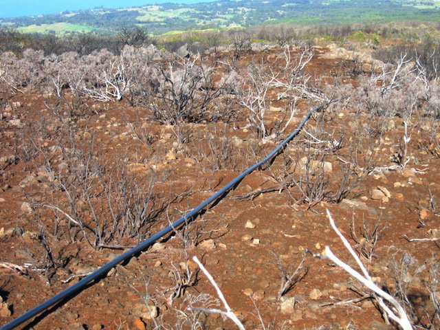 Cette belle randonnée hors sentiers officiels mériterait assurément une quatrième étoile si l'ONF décidait un jour d'y faire passer un sentier balisé. Il faut se contenter d'une cinquantaine de cairns lors de la montée le long de la Ravine des Colimaçons mais seulement une dizaine pour la descente du Fond Simambry. Malgré les incendies, les paysages sauvages restent originaux car différents de ceux habituellement rencontrés. La Ravine des Colimaçons, déjà empruntée en descente lors du tour du Piton Vera, comporte des canyons étroits et profonds où poussent des tamarins qui ont pu être épargnés par les flammes. Le Fond Simambry propose également des canyons étroits mais surtout d'innombrables retenues d'une eau très propre qui inciterait même à une petite baignade. Ces deux ravines ne sont pas dangereuses à la condition expresse de ne pas trop s'approcher des bords verticaux de leurs rives déchiquetées. Il est même fortement déconseillé d'y amener des enfants. Inutile de suivre à la lettre les cairns semés ça et là car il y a toujours quelque chose à voir à 10 ou 20 mètres de la trace : une pierre sculptée, une retenue d'eau, une grotte, un magnifique tamarin dans une crevasse ou un fond de rivière baignée d'eau. L'idéal est d'effectuer la boucle le lendemain d'une forte pluie car il subsistera d'office des petites chutes d'eau qui rendront le circuit encore plus attrayant. Des pistes ont été construites récemment afin de permettre des accès plus rapides à des zones éloignées en cas de nouveaux incendies. On peut suivre la piste qui longe le sentier du Piton Rouge à la Glacière mais on perd le charme de la nature. C'est également un vrai bonheur de voir la végétation reprendre ses droits. Les tamarins sortent ça et là, soit des souches moins brûlées ou des zones de lave recouvertes d'un peu de terre. Les fougères ont déjà bien poussé mais il vaut mieux voir de jeunes tamarins pour l'avenir de la région.