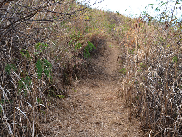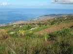 La randonnée débute au plus près de la RN1a avec quelques emplacements de parking possibles le long de la route, près de la piste qui rejoint l'ancien pont mais surtout sur le bord de la route qui mène à la Grande Ravine. Laisser à gauche la route de la Grande Ravine qu'on empruntera en fin de boucle et prendre à droite une petite route qui grimpe tranquillement en 4 lacets vers la route des Tamarins. Après 300 mètres de marche on pourrait prendre à gauche un raccourci mais il n'est pas toujours en très bon état surtout qu'il chemine dans des épineux et les herbes sèches qui peuvent rebuter en début de circuit. De plus, de nombreuses plantes se débarrassent de leurs graines collantes qui restent longtemps accrochées aux vêtements. Les panoramas sont nombreux sur l'océan et la côte mais s'adressent surtout aux amateurs de désert, à moins d'y passer après deux mois de pluies (Photo 1). On a du mal à imaginer qu'une grande partie de ces vastes étendues recouvertes d'épineux étaient jadis des champs de coton, de café ou autres récoltes du temps de l'esclavage. Que l'on prenne courageusement le raccourci ou la petite route, on se retrouve en moins d'une demi-heure de pente faible près du pont qui enjambe la voie rapide. Sur la gauche on aperçoit le pont de la Grande Ravine sous lequel on marchera dans six heures (Photo 2). Le petit pont qui enjambe la Route des Tamarins est un bien lourd investissement pour le peu de véhicules qui le franchissent (Photo 3). Ce sont souvent des 4x4 transportant les branches d'avocats marrons ou zépinards destinés à nourrir les biquettes. Comme la route s'élève, on domine la voie rapide, en général assez bruyante (Photo 4). Après le pont, poursuivre sur la piste caillouteuse jusqu'au premier croisement et obliquer à droite vers Piveteau (Photo 5). Cette piste où l'on est certain de marcher sereinement traverse cette végétation pauvre où aucun arbre remarquable ne viendra ralentir la marche (Photo 6). Elle arrive à un croisement qu'on empruntera pour le retour afin de créer une seconde boucle. Elle se finit à une route d'où l''on profite de nouveaux panoramas jusqu'à Saint-Leu (Photo 7) ou la Saline (Photo 8). Cette petite route bétonnée effectue quelques lacets jusqu'à un des hameaux de Piveteau (Photo 9). Pour éviter de rejoindre la Route Hubert Delisle par la route, ne pas manquer la piste qui débute au-dessus du village. Elle monte dans les champs, les savanes desséchées ou les friches (Photo 10). Elle est plate ou en pente faible à travers les champs (Photo 11). Les fils électriques et quelques conifères annoncent la fin proche de la montée (Photo 12). La piste finit au Chemin Bénard, aux premières cases de la Petite Ravine d'où l'on rejoint la route sans difficulté en longeant des jardins, accompagné par les aboiements parfois violents des gardiens de cours ! Flâner le long de la route pour rejoindre le pont sur la Grande Ravine. On peut y voir des cases typiques, des jardins fleuris, des cultures et profiter d'un superbe panorama sur l'océan depuis les alentours de l'église de Cocâtre à la forme originale d'une clé de sol (Photo 13). On peut en faire le tour presque complet en longeant la rambarde pour profiter des multiples points de vue. Cette portion de goudron de 2 km est inévitable mais c'est sans regret qu'on parvient à la Grande Ravine. Lorsqu'il y a de l'eau dans la ravine, une très haute cascade se jette dans le fond de la vallée. Le fond est rocheux et l'endroit sauvage (Photo 14). Un petit sentier permet, à partir du pont, de rejoindre le fond de la ravine pour mieux voir le précipice creusé par la cascade (Photo 15). Si on ne veut pas marcher jusqu'au pont, bifurquer 50 m avant, à gauche, le long des hautes touffes de bambous longeant une petite route bétonnée (Photo 16). La route s'éloigne du rempart pour desservir des habitations puis le rejoint. Elle se poursuit par une piste étroite recouverte de millions de feuilles de bambous (Photo 17). Ces bambous créent une barrière visuelle empêchant de profiter du fond vertigineux de la ravine qu'on aperçoit tout de même dans les rares trouées (Photo 18). Il y a deux manières de rejoindre ce fond de ravine pour amateurs de sculptures de basalte et de bassins. En remontant la ravine, à sec sur de gros rochers à partir de la mer ou en descendant par la rive droite depuis le village par une forte pente le long du rempart (Photo 19) . La piste, après avoir traversé des champs de canne (Photo 20), se termine à la petite route qu'on aurait pu emprunter à Cocâtre. On rejoint Piveteau par de nombreux lacets. Ne pas poursuivre jusqu'à la fin de la route car elle se termine en cul de sac mais prendre à gauche dans un lacet pour franchir les deux petites ravine et rejoindre le croisement aperçu dans la montée. Reprendre en sens inverse la route qu'on vient de remonter récemment et retrouver un nouveau croisement également repéré dans la montée. Bifurquer alors à droite et rejoindre dans les hautes herbes le passage délicat expliqué et détaillé ci-dessous (Photo 21). Si on prend bien soin de tourner à gauche avant la fin du chemin, on passe sans encombre sous la Route des Tamarins en débutant par un long escalier (Photo 22). La seule difficulté de la journée se présente alors dans les 200 mètres qui suivent la traversée sous la route. Par manque de piétinements, il faut viser dans la végétation et repérer les meilleurs passages pour contourner la réserve d'eau de la RN1. La piste, assez bien entretenue après les travaux de la RN1, est presque bouchée et peut rebuter les moins habitués (Photo 25). Le retour au village de la Grande Ravine s'effectue sur une piste herbeuse qui serpente entre les faux poivriers, les acacias et les chocas dans une zone sèche et désertique (Photo 26). Ne pas manquer, dans le premier virage à gauche après la voie rapide, le point de vue sur l'ouvrage qui 