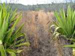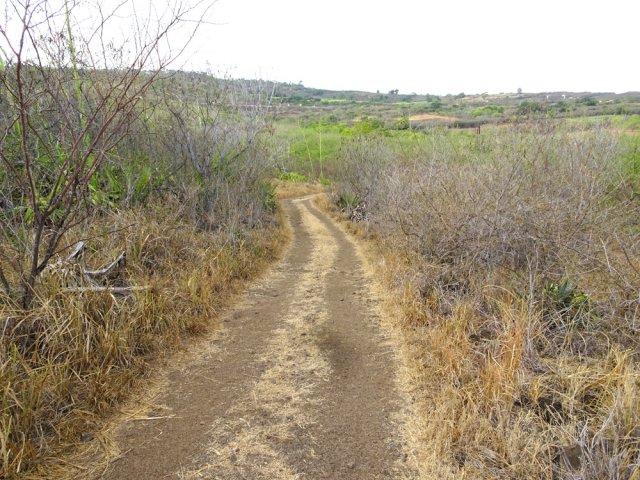 La randonnée débute au parking de covoiturage, facile à trouver et bien indiqué lorsque l'on quitte la Route des Tamarins et que l'on prend la direction de l'Eperon. Stationner et se diriger vers la RN1 en longeant la route puis en traversant la friche qui sépare de la profonde vallée de la Ravine Saint-Gilles. On parvient au pont qui enjambe la ravine, en traversant bien sûr quelques dépôts sauvages. Avant d'emprunter les escaliers qu'on remarque sur la droite de l'ouvrage, partir sur la droite sur le petit sentier dans les herbes et sur les pierres. Il longe le bord d'où l'on ne peut voir la rivière en raison de l'importante végétation qui en couvre le fond (Photo 1). On parvient rapidement à une haute échelle presque verticale et une canalisation qui plonge dans la rempart (Photo 2). Emprunter l'échelle et rejoindre le sol sous le gros rocher. La descente, sur grosses pierres assez stables, débute le long de la canalisation dans laquelle on entend bien l'eau couler (Photo 3). La descente est technique sur les très hautes marches qui imposent parfois de s'asseoir pour les passer. Il faut près de 5 minutes de désescalade pour atteindre un ouvrage bétonné proche des grottes de la falaise dominant le bassin Malheur. Au petit matin, même sans lumière, l'eau parait bleue (Photo 4). Comme la randonnée est courte, ne pas hésiter à se promener sur le classique circuit des cascades de Saint-Gilles, au moins jusqu'à dominer la haute chute du Bassin des Aigrettes. Faire demi-tour puis reprendre la difficile montée caillouteuse jusqu'à l'échelle (Photo 6). Rejoindre le pont et emprunter l'escalier qui descend vers la ravine (Photo 7). On pourrait marcher n'importe où mais les multiples passages ont créé un sentier passant sous l'important pont bétonné (Photo 8). S'il n'y a pas d'eau, ce qui est le cas le plus fréquent, la traversée est une balade sur le fond basaltique couvert de grosses roches (Photo 9). Partir sur la droite, suivre le sentier en terre à travers les chocas, les épineux et les premiers tamarins. On parvient au premier point de vue qui domine la Bassin Malheur d'où l'on peut voir la canalisation qu'on a longée récemment (Photo 10). Le terrain alterne savanes, parties boisées de poivriers et de hauts mâts de chocas (Photo 11). On remarque quelques eucalyptus qui tranchent avec le paysage classique (Photo 12). Deux petits belvédères permettent de dominer la rivière et de profiter de toute la chute des Aigrettes (Photo 13). On rencontre plusieurs fois des embranchements : prendre toujours à droite à moins de vouloir raccourcir le trajet. On remarque sur la droite les premiers vestiges du canal de transport de l'eau qui domine le Bassin des Cormorans. Plus loin, le canal est en eau sur quelques mètres mais les lentilles d'eau recouvrent tout. Certaines portions sont encore en bon état même si l'eau ne pourrait y rester (Photo 14). Le sentier est toujours correct au milieu des plantes brûlées par le soleil (Photo 15). On domine Saint-Gilles et la mer à plusieurs reprises. Le sentier poursuit sa boucle en longeant le canal qu'on quittera bientôt (Photo 16). On parvient à une piste qu'on emprunte en remontant vers la droite sur un sol caillouteux (Photo 17). La piste commence à descendre dans les épineux en direction de la station de pompage qu'on aperçoit plus bas dans le bois (Photo 18). Pour rejoindre le petit bâtiment, il faut partir sur la piste de droite et tourner à gauche au premier embranchement. Le local qui abrite encore les moteurs et pompes vieillit tranquillement (Photo 19). Repartir en suivant la piste ou comme ici un beau sentier étroit qui remonte en pente douce dans la savane (Photo 20). Plus haut, la pente s'accentue un peu et les cailloux se multiplient (Photo 21). On commence par entendre de plus en plus les véhicules fonçant sur la voie rapide puis l'on s'approche du pont qui enjambe un large talweg (Photo 22). Le sentier se termine à une piste. Partir sur la gauche, passer sous le pont, poursuivre sur la piste qui oblique sur la gauche. Elle se poursuit tout droit mais il faut emprunter le sentier qui remonte en partant sur la droite. On retrouve à peu près la même configuration que plus bas (Photo 23). Les tamarins qui vivent dans d'importantes couches de cailloux laissent tomber leurs feuilles au sol qui rougissent alors en séchant (Photo 24). Laisser à droite les sentiers remontant vers le Golf du Bassin Bleu. On se retrouve à longer des grillages qui séparent la brousse des greens arrosés et tondus impeccablement (Photo 26). Le sentier s'approche de la ravine mais les points de vue sur le Bassin Bleu sont rares, surtout bouchés par les branches. La parcours oblique vers la gauche à travers de grandes concentrations de chocas bleus (Photo 27). La fin du parcours s'effectue dans cette savane qu'on n'aura jamais quittée, au milieu des épineux et des herbes jaunies (Photo 28). Le pont et la Ravine Saint-Gilles se rejoignent par de multiples sentiers. Prendre le chemin inverse à celui du départ pour terminer la boucle.