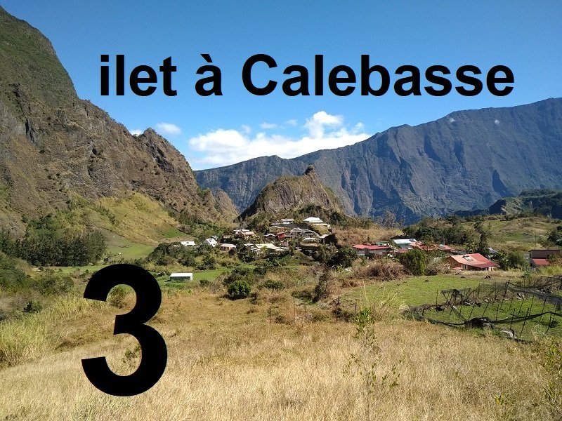 Piton Morel : La randonnée débute près du pont sur la Ravine des Calumets afin de terminer la deuxième boucle près de l'aire de pique-nique. Il est bien sûr possible de stationner au centre ville et d'adapter cette sortie en fonction. Longer le ruisseau vers l'aval en empruntant le sentier qui lui est parallèle en rive gauche. Traverser la ravine aux croisements de sentiers et emprunter le premier à droite remontant vers le stade de Palmiste Rouge. Il est assez raide sur des lacets sableux mais relativement court. Prendre à gauche le Chemin Papaye et regagner le centre ville avec ou sans les raccourcis (Photo 1). Marcher vers Cilaos, franchir le Bras Morel et tourner immédiatement à droite sur le sentier du Piton Morel. Le sentier grimpe d'abord sous les filaos avant de rejoindre des zones de végétation plus basse (Photo 2). La pente est régulière sans piège particulier (Photo 3). Plus on monte et plus les paysages vers le village ou en direction de l'Îlet à Calebasse s'élargissent (Photo 4). Un belvédère sur la gauche permet d'admirer ces paysages en soufflant un peu. Une partie des flancs du piton est cultivée et le sentier traverse un champ pentu de lentilles. Une portion plus pentue débute à l'approche d'une barre rocheuse qui imposera de se pencher un peu vers l'avant (Photo 5). Certaines parties du sentier sont de bonne qualité et la grimpette s'effectue assez rapidement avec toujours ces beaux panoramas (Photo 6). Le sentier traverse plus loin une zone instable où les petits éboulis fréquents créent des tas de sable glissants (Photo 9). On arrive au croisement avec le sentier remontant vers l'Îlet de Gueule Rouge et celui descendant à Palmiste Rouge. Si le chrono le permet, prendre à gauche et attaquer une très forte pente jusqu'au point de vue du Piton Morel. L'effort est important mais le résultat fait tout oublier d'un coup (Photo 10). Hormis un pan du Grand Piton, on a une vue circulaire sur l'ensemble du cirque de Cilaos. Reprendre en descente le sentier du point de vue et rejoindre le croisement. Tourner à gauche et entamer la courte descente vers le village. On emploie quelques lacets en bord de falaise sécurisé par les rambardes (Photo 11). La descente, assez caillouteuse traverse des zones couvertes de galaberts, de cannes fourragères et de chocas (Photo 12). Le sentier, bordé de pierres sèches au milieu des cultures annonce la fin proche de la descente (Photo 13). Le village, du côté du Chemin Morel est bordé de grands champs de lentilles (Photo 14). Prendre à gauche en arrivant à la route et rejoindre le terrain de sport de plusieurs manières possibles (par la route ou en empruntant un raccourci à la fin du Chemin du Bassin). On se retrouve alors sur la portion de sentier qui montait tellement au départ vers Palmiste Rouge. C'en est fini de la première boucle au moment où on rejoint le véhicule après cette descente.