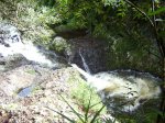 A la fin de l'aller-retour, on peut prendre le sentier vers le Camp Michel. Il est large et pavé par endroits (photo 19), toujours ombragé et permet également de rejoindre la rivière par des sentiers latéraux. En revanche, il a beaucoup souffert des cyclones et tempêtes de début 2018. Les cases sont abandonnées et la végétation l'envahit peu à peu. Après la balade familiale entre les deux bassins, ce supplément est beaucoup plus aventureux.