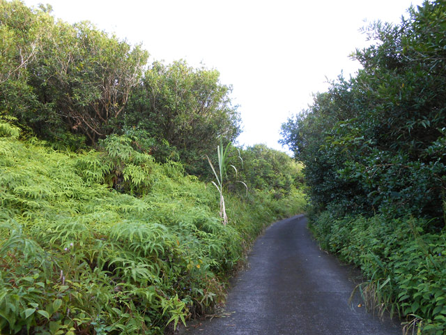 La randonnée débute ici au croisement de la Route Forestière de Takamaka quelques dizaines de mètres avant la piste descendant à la Pointe de la Table. On peut stationner avant ou après le premier virage à gauche. Cette route goudronnée monte régulièrement en forêt jusqu'à la Ravine de Takamaka puis traverse ensuite les champs de canne. Elle est étroite et sans circulation, hormis quelques producteurs de vanille, et monte à peine entre les fougères et bois divers de ces altitudes (Photo 1). Très vite, on remarque dans les sous-bois des centaines de pieds de vanille qui grimpent sur les poteaux naturels créés par les arbres laissés là à cet effet (Photo 2). Si une voiture, un scooter ou une bicyclette est en stationnement sur l'accotement, tenter de rencontrer la personne venue le matin pour fertiliser les fleurs. Sans prendre trop sur son temps compté, ces explications sont toujours intéressantes. Moins de deux kilomètres plus loin, on traverse la Ravine de Takamaka au fond basaltique glissant à cause de la mousse (Photo 4). Cette ravine a vu son cours chamboulé par la coulée de 1986. C'est également là qu'on trouve le sentier montant vers le Piton de Takamaka dans les fougères et les bois de chapelets. Les cannes remplacent les bois et les plans de vanille dans les Hauts du village de Takamaka. (Photo 5). Le goudron a souffert des passages des tracteurs et des radiers profonds empêchent d'y passer avec des voitures basses sur roues. Comme il n'y a plus d'arbres, le regard porte jusqu'au Piton de Takamaka (Photo 6) ou vers les Grandes Pentes (Photo 7). Plusieurs pistes cannières redescendent vers la mer qu'on aperçoit dans les trouées, même si la canne est haute. La petite route traverse la Ravine Pavée, plus belle que la précédente (Photo 8). Le paysage alterne petits bois non cultivés et champs de canne à sucre. Traverser la Ravine Rencontre et tourner quelques mètres plus loin sur une piste constituée de cailloux et surtout de larges plaques de basalte (Photo 9). On comprend mieux, en voyant ce sol, pourquoi les cannes sont si petites à côté ; elles n'ont rien pour se nourrir et même l'eau abondante de la région ne suffit pas à leur développement puisqu'elle file vers le bas au lieu de s'infiltrer. La piste est un peu envahie d'herbes qui sont régulièrement écrasées par un 4x4 ou les tracteurs. Le planteur passe également du désherbant. Effectuer la boucle en hiver assure de bons panoramas et la piste, très utilisée, aura perdu toutes sa végétation. On arrive à une palmeraie traversée par la piste encore plus défoncée qu'ailleurs puis on parvient très rapidement à la route à l'arrêt de bus des Pandanus. Prendre à gauche et marcher moins de 2 km sur la RN2. C'est moins agréable que sur routes forestières ou sur les pistes cannières mais ce tronçon est obligatoire si on veut effectuer une bonne sortie en bord de mer (Photo 10). On traverse ainsi les habitations du Tremblet, on marche sur le tunnel de lave du Brûlé des Citrons Galets et on emprunte aussitôt la petite route qui redescend en lacets vers le Quai de Sel à la Pointe du Tremblet avec encore quelques pieds de vanille sur les arbres. La descente est faible et constante, toujours à l'ombre (Photo 11). Quand le bruit des vagues est au plus fort, prendre à droite le sentier qu'on suivra sans beaucoup de difficultés jusqu'à la Pointe de la Table. Le trajet commence entre les goyaviers et leurs racines (Photo 13). Puis ce sont les vacoas qui l'emportent avec parfois de beaux spécimens ou d'autres aux racines interminables (Photo 14). Des petites sentes de pêcheurs partent souvent vers la falaise. Il n'est pas toujours facile d'en suivre quelques unes pour mieux voir la mer ou surtout les endroits où passent les pêcheurs pour rejoindre les rochers en bas (Photo 15). De plus, ils effectuent ces escalades en savates deux doigts ! Plus loin, ce sont les fougères qui bordent le sentier herbeux sous de multiples filaos (Photo 16). Quand c'est l'herbe qui est majoritaire, elle a vite fait de recouvrir le sentier mais les multiples passages la domptent un peu (Photo 17). Peu après la Roche à Jacquot on commence à apercevoir les falaises créées en 1986 par la coulée de la Pointe de la Table (Photo 19). En fonction de la fatigue, on peu effectuer toute la boucle de la Pointe de la Table, une moitié seulement par l'Ouest ou comme ici une balade hors sentier sur les coulées et sous les filaos (Photo 20). A la fin de la zone, on est bloqué par de hautes falaises. Partir sur la droite et les longer à l'ombre des filaos (Photo 21). Il n'y a pas de danger et on a l'assurance de rencontrer de beaux paysages le long des falaises ou trouver des crabes qui aiment se cacher dans les fissures (Photo 22). Deux manières de s'échapper de ce cirque : en escaladant 2 mètres de la falaise en face du sentier de la boucle mais il faut se méfier de la chute ; ou en filant vers le point d'entrée utilisé 10 minutes avant. Avant de poursuivre en suivant cette trace, ne pas hésiter à marche sur les autres plaques basaltiques plus au sud. En cherchant un peu on peut dénicher de plus ou moins belles arches basaltiques en bord de mer (Photo 23). Revenir sur la boucle officielle où il est toujours aussi agréable d'emprunter les coulées de 1986 qui ressemblent parfois à de véritables routes (Photo 24). Dans un virage du sentier Ouest, débute un sentier qui rejoint la route en moins de 500 mètres (Photo 25). Il monte sur des larges plaques de lave noire et il faut absolument se méfier des fissures en partie couvertes de plantes dans lesquelles il est très facile de se briser une cheville ou un tibia si on marche le nez en l'air (Photo 26). Plus haut, il est de très bonne qualité sous les bois de couleurs et l'on entend déjà passer les véhicules sur la RN2 (Photo 27). Ce sentier se termine par un panneau de l'ONF donnant des explications sur l'agrandissement 