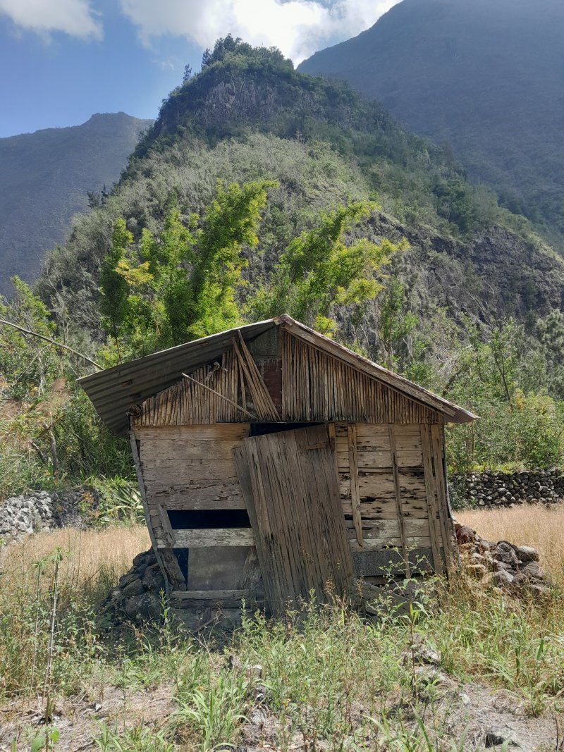 La randonnée est assez longue ; elle débute ici au Nez de Bœuf pour pouvoir profiter au passage du belvédère qui permet de deviner le sentier qu'on utilisera bientôt, 600 mètres plus bas. Cela présente également l'avantage de préparer un peu les jambes à la très longue descente vers la vallée. Les randonneurs moins entraînés ou plus pressés s'approchent au plus près du départ du sentier de Roche Plate où quelques emplacements permettent de stationner. On rejoint le point de vue du Nez de Bœuf depuis le parking et les tables ou kiosques de pique-nique. Le spectacle est grandiose si le soleil est levé. Pour mieux voir le fond et Roche Plate, il faut arriver en milieu de matinée mais pas pour randonner car le retour s'effectuerait en fin de journée. On longe ensuite le bord du rempart parmi les brandes d'altitude et hélas des traces encore visibles de certains incendies. On profite encore de très beaux panoramas sur la vallée et le Cratère Commerson au-dessus, facilement reconnaissable aux lèvres du cratère qui dépassent à l'horizon. Magnifique spectacle si la mer de nuages qui recouvre la vallée n'est pas encore dissipée (Photo 1). Le sentier descend rapidement par quelques lacets caillouteux dans une végétation qui va en s'épaississant au fur et à mesure de la descente (Photo 2). Le regard plonge vers la forêt qui recouvre le haut de la vallée de la Rivière des Remparts (Photo 3). Le sol est correct malgré les hautes marches, bordé souvent d'herbe humide qui mouille les chaussures. Petits tamarins des Hauts, ambavilles, fleurs jaunes ou branles constituent l'essentiel de la végétation. Certaines portions plates sont agréables et seront très appréciées à la remontée (Photo 4). Quelques marches hautes se passent au ralenti pour éviter les glissades. Les à-pics sont naturellement protégés par la végétation. Le sentier est parfois étroit par moment sans que cela soit gênant (Photo 5). Il arrive bientôt en fin de descente. Les bois de couleurs font leur apparition sans que la pente change beaucoup (Photo 6). Quand on arrive dans la partie humide aux alentours du Mapou, on rencontre de très nombreuses espèces d'arbres qui ont réussi à atteindre de belles dimensions (Photo 7). La forêt est touffue et magnifique (Photo 8). Un coup d'œil dans le haut, si la végétation l'autorise, permet de voir le Nez de Bœuf séparé par un rempart vertical duquel coulent quelques cascades (Photo 9). On remarque également de belles orgues basaltiques dans la falaise verticale. La forêt reste touffue, humide et moussue ; les arbres sont beaucoup plus gros et forts mais tortueux et le sentier boueux à cet endroit arrête de descendre un moment. Les aventuriers pourront repérer pour une prochaine sortie le départ du sentier vers les souterrains de la Ravine Citron Galet. On poursuit vers Roche Plate qu'on commence à deviner dans le fond et la végétation va encore changer car la couche trop fine de terre a empêché l'installation des bois de couleurs (Photo 11). Les branles verts l'emportent sur le reste avant d'être remplacés presque en totalité par les goyaviers. C'est dans ces goyaviers serrés les uns contre les autres qu'il faut également dénicher pour une prochaine sortie l'étroit sentier qui mène à Eboulis Rouge pour y admirer de belles cascades ou des bassins d'eau fraîche. Hélas, les goyaviers sont si nombreux que le passage devient de plus en plus difficile. On passe près d'une ancienne piste qui débutait par un pont devenu dangereux et se dirigeait vers le rempart (Photo 13). Le sol du sentier vers Roche Plate est très dur car constitué exclusivement de lave, souvent glissante autant à la descente qu'à la montée (Photo 14). Il est tantôt assez large, tantôt plus étroit mais ne disparait jamais (Photo 15). Les vues sur la vallée sont nombreuses et on peut ainsi mieux estimer le temps de marche jusqu'à Roche Plate (Photo 16). Ce sentier descend de moins en moins quand on s'approche de la rivière des Remparts. On rencontre même certaines portions plates qui permettent de reposer les muscles qui freinent depuis plus de deux heures. C'est à ce moment qu'il faut regarder sur la gauche pour voir les fractures de la Rivière des remparts où coulent par temps de pluie de grosses cascades (Davedinde) qui ont creusé ici une arche naturelle, des marmites et de belles cavernes, presque dangereuses si on s'approche de trop près (Photo 17). Arrivé à 1000 m, une nouvelle pente débute sous les filaos et s'aplanit en arrivant sur les basaltes qui bordent la rivière (Photo 18). On rencontre plus bas le sentier qui part à gauche vers Fond de Sonje. Ce croisement indique la fin proche de la descente (Photo 20). Des murettes en pierres sèches de plus en plus hautes bordent le sentier (Photo 1). Il y en a de tous côtés et même en rive gauche si on prend le temps d'effectuer la visite par l'autre sentier. C'est en pente très douce qu'on parvient à Roche Plate qui débute par un gîte sur la gauche. Quelques étables typiques, entourées de murettes ne contiennent plus les biquettes ou les porcs qui vivaient là au siècle dernier (Photo 22). Si aucune autre destination n'a été programmée, il faut alors songer au retour qui s'effectuera toujours en montée. Le détour par le point de vue de l'Îlet Tommy prendra assez peu de temps et chauffera bien les mollets car la pente y est courte mais très forte (Photo 23). Mais les vues sur les remparts entrecoupés de rivières sont sauvages et splendides. En période humide, de nombreuses cascades sont visibles ou audibles dans les alentours.