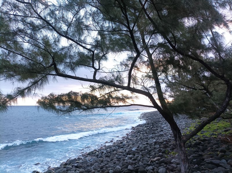 La randonnée débute au point de vue sur l'océan, très connu des touristes dans la descente vers Saint-Joseph après avoir franchi la Ravine de Manapany. Depuis le muret, le paysage est magnifique et permet d'imaginer la fin de la boucle (Photo 1). En face, de l'autre côté de la route, la Source Lucas coule en permanence au milieu de sa touffe de bananiers (Photo 2). Partir vers la Petite Île par un très court tronçon de la RN2. On attaque directement l'ascension du Piton par une piste qui débute de l'autre côté de la route entre deux maisons. C'est la partie basse du Chemin César, tantôt pavée, tantôt recouverte d'herbe ou de feuilles et bordée par endroits de grillages de sécurité en cas d'éboulement (Photo 3). Après de très longs lacets, il se transforme en route étroite bordée de bananiers et pandanus avant de parvenir à quelques habitations. On se retrouve à cheminer près de quelques cases espacées, bordées d'arbres fruitiers entre lesquels on profite de beaux panoramas campagnards (Photo 4). Poursuivre sur le Chemin César. De hautes cannes de chaque côté de l'étroite route bouchent la vue (Photo 5) mais la Ravine de Manapany apparaît si les cannes sont coupées. Quelques champs bordent également la route (Photo 6). Marcher jusqu'au Chemin des Bananiers et tourner à droite aux nouvelles habitations. Poursuivre sur la piste qui file plein sud dans de nouveaux grands champs de canne à sucre (Photo 7). Les panoramas verdoyants sur la droite embrassent toutes les cultures de la canne à Petite Île. La piste oblique sur la gauche et se termine soudainement, remplacée par un très agréable sentier ombragé dans les fougères (Photo 8). Il se termine lui-même pour être à nouveau remplacé par une piste qui remonte dans les maraîchages et les cannes. Cette fois, c'est sur Saint-Joseph et Manapany que porte le regard (Photo 9). On remarque aussi l'épaisseur impressionnante de terre constituant le Piton de Manapany, creusé par les agriculteurs afin de récupérer des terres planes de culture des légumes (Photo 10). La piste ondule encore sous les poivriers avant de rejoindre un lacet de la Rue des Dardanelles. Partir sur la droite jusqu'au prochain lacet. Aussitôt le virage passé, trouver la piste, sur la gauche dans les cannes, qui descend vers la mer (Photo 11). Partir à nouveau à gauche jusqu'au croisement de deux routes. Poursuivre sur l'agréable Chemin du Solitaire pour une marche à plat au début (Photo 12). Il file en direction de Saint-Joseph en longeant un rempart boisé (Photo 13). Le chemin bétonné longe des champs d'où l'on a de larges vues sur la mer et sur le nouveau complexe commercial des Terrass (Photo 14). Repérer le radier de la Ravine Carrosse, le seul important du chemin du Solitaire puis tourner à droite sur la nouvelle route qui contourne par l'ouest cette zone commerciale. Si la Ravine Carrosse est en eau, c'est qu'il y en a aussi dans la Ravine des Grègues. En profiter pour poursuivre jusqu'au radier et observer le bassin et deux courtes cascades (voir les points d’intérêt). Sinon, un large sentier bétonné longe la route entre de nombreux pieds de vétiver et des essences nouvellement plantées (Photo 15). Poursuivre jusqu'au bout sur cet agréable sentier moderne, passer sous le pont de la déviation et longer quelques rues pour se retrouver facilement à la RN2. Traverser la route : attention, pas de passage piéton mais un terre-plein central. Emprunter une courte portion de la Rue des Anones puis de la Rue François-Martin de Manapany. A la fin de la route, un sentier part en direction de Manapany. L'emprunter et bifurquer très vite à gauche en direction de la mer. Ce petit sentier très agréable se rapproche de la mer puis s'en éloigne pour revenir au village (Photo 16). Cet écart permet de se rapprocher de la mer pour apercevoir la côte vers Petit Sable depuis de hautes falaises bordant le village (Photo 17). A la fin de ce joli petit sentier, partir vers Manapany en suivant la route principale qui passe près de l'église (Photo 18). Après 800 m d'une agréable route de village (Photo 19), bifurquer à gauche pour une intéressante visite autour du Grand Cap. On rencontre tout d'abord l'office de tourisme avant de descendre par un escalier qui traverse une aire dédiée au gecko, comportant quelques panneaux. Plus bas, on peut faire le tour du four à chaux et se balader pour découvrir des arches naturelles, rechercher des blenniesPoisson de roche qui passe une bonne partie de son temps à arpenter les roches de bord de mer, hors de l'eau. et des oursins tortues sur les rochers (Photo 20). Le Cap Chevron, battu par les vagues, est très agréable et l'on peut apercevoir la suite de la boucle en direction de la plage de Manapany en s'approchant des ruines du débarcadère. Avant de reprendre la petite route, il est possible de descendre sur le bord des rochers pour apercevoir la petite île à l'horizon (Photo 22). Repartir après cette visite instructive puis regagner le bassin de baignade, toujours fréquenté (Photo 23). Poursuivre en longeant les installations et les galets de la plage (Photo 24) avant d'emprunter l'escalier permettant de retrouver la rue principale. Chercher dans les palmiers et vacoas la présence du gecko de Manapany, hélas de moins en moins visible (Photo 25). Sur la droite, repérer le Chemin des Anglais qui monte fortement par un sol bétonné surchauffé. Plus haut, l'ombre arrive en même temps que le chemin pavé qui serpente entre quelques arbres rabougris dont beaucoup de poivriers et acacias (Photo 26). Le chemin pavé est court mais encore en bon état (Photo 27). Lorsque les pavés laissent la place au béton et que les pandanus se multiplient, c'est bientôt la fin de la montée (Photo 28). On est à quelques mètres de la RN1. Partir à droite pour retrouver l'aire du point de vue sur Manapany.