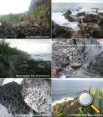 La randonnée débute au grand parking de la Pointe du Diable. Si cette étape est intégrée à une tour de l'île, les marcheurs arrivent de Bel Air et de l'aéroport de Pierrefonds en longeant la mer (Photo 1). Emprunter le parcours bétonné qui va de la plage de la Pointe du Diable jusqu'au grand parking du magasin Jumbo Score. Après un petit détour jusqu'à la fin de la pointe de lave, la marche s'effectue au plus près des vagues (Photo 2). La jonction est agréable dans un parc en bord de mer. Longer le parking et repérer le souffleur, en bord de mer, à la fin de la route de sortie. Attendre la bonne vague pour repérer le jet plus ou moins haut près de la zone d'entrainement des skates (Photo 4). La traversée de la Ravine Blanche ne pose pas de problème particulier comme le reste du circuit jusqu'au port de Saint-Pierre. A la Ravine Blanche, repérer les toitures colorées qui dépassent sur la gauche, à une centaine de mètres, et les rejoindre par l'Avenue Luc Donat et l'Allée Narrassigua Perroumal pour admirer un des plus beaux temples de la Réunion (Photo 5). Reprendre par la rue ou la plage en fonction de la topographie des lieux, le but étant de marcher toujours au plus près de l'eau. A deux endroits, dont l'hôtel Grand Large, il vaut mieux quitter les bords de l'eau afin de suivre une rue pour un court moment. On pourrait marcher sur les rochers à marée basse mais des habitations se terminent sur la mer (Photo 7). Plus loin, passer près de la petite sirène constamment taguée et détériorée en raison de sa tenue dénudée(Photo 8) et poursuivre en direction du port par une ruelle qui longe la mer. Rejoindre le port en marchant sur la plage et se rapprocher du bassin de radoub en empruntant une partie du parc arboré (Photo 9). Ce petit parc au cœur de la ville procure de l'ombre agréable mais sur une courte distance (Photo 10). Après une balade dans le parc qui entoure le port, on peut se rapprocher de la plage (Photo 11). Tout près, il est facile de visiter le port si on le désire (Photo 12) puis de trouver la Rue de l'Amiral Lacaze longeant la côte, à l'ombre des grands banians qui la bordent. Repérer leur racines entrelacées qui créent des sculptures vivantes (Photo 13). Longer la mer en visitant les curiosités présentées sur la randonnée urbaine de Terre Sainte. A la Pointe du Parc et à la Pointe du Gouffre, filer tout droit par les rochers pour profiter des roches déchiquetées, de la petite arche (Photo 15) et, hélas, de beaucoup d'ordures. Comme les militaire apprécient peu qu'on longe les rochers et leur enceinte pour regagner le sentier de Bord, emprunter alors le Chemin du Trou de Chat, contourner le régiment et longer l'enceinte des logements en frôlant le petit supermarché. Suivre ensuite au plus près la muraille d'enceinte du régiment et rejoindre le bord de mer. Trouver le début du Sentier de Bord qui sera la seule portion de sentier officiel de cette sortie. On est près de l'eau et il n'y a aucune habitation (Photo 16). Le sentier longe la mer dans un cadre agréable qui permet un petit repos (Photo 17). Le sentier se termine sur la route de Terre Sainte. Partir à droite puis emprunter immédiatement la petite route qui rejoint par quelques virages le magnifique Bassin Dix-huit (Photo 18). A la fin de ce sentier, on alterne entre les routes littorales et les sentiers au plus près de l'eau pour traverser le très long village de Grands Bois. Suivre la trace ou la carte pour passer au plus près de l'eau car la côte est sauvage et vaut ces petits détours (Photo 19). Par forte houle, le spectacle des vagues se brisant sur les rochers est magnifique (Photo 20). On parvient, plus loin, à l'ancienne usine reconnaissable à sa cheminée. Prendre juste en face et se diriger vers de nouveaux grand s banians aux racines entremêlées (Photo 21). Tout près, l'avenue Daniel Ramin, qui est une minuscule route longeant la plage, passe devant le minuscule bassin de baignade dans les rochers (Photo 22) puis la longue plage (Photo 23). A la fin du village, de la route et de la plage, opter pour une des deux solutions possibles :