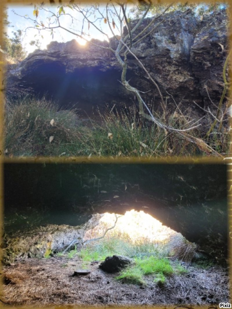 La randonnée débute dans les cryptomerias en bordure de la Route Forestière du Tévélave, au croisement de la Piste Forestière des Longoses. Le début du Sentier de Grande Terre qu'on rencontrait officiellement 200 mètres plus loin a petit à petit été abandonné pour être remplacé par un raccourci qui est devenu aussi large que le précédent (Photo 1). La montée est agréable dans la fraîcheur des sous-bois de tamarins malgré les racines omniprésentes ou quelques pierres moussues (Photo 2). Plus haut, on grimpe régulièrement sous les tamarins des Hauts envahis de longoses sur un tapis d'herbe (Photo 3). Quelques fougères arborescentes continuent à vivre malgré l'ombre des grands arbres (Photo 4). Les portions plates sont rares mais bienvenues (Photo 5). A peine deux kilomètres plus loin, on rejoint la route forestière des Tamarins dont les fossés sont rougis par de vastes tapis de renouées (Photo 6). Il faut alors partir vers le Tévelave sur le béton pour retrouver le beau sentier Mario qui commence juste à côté d'une grande aire de pique-nique très fréquentée en fin de semaine (photo 7). Il chemine lui-même sous les tamarins, toujours dans les longoses et sur un tapis d'herbe et de feuilles (Photo 8). Il coupe à deux reprises la RF du Haut Tévelave. Après un raccourci d'un important lacet, obliquer à gauche pour emprunter la piste qui part à plat plein Nord-Ouest (Photo 10). Elle coupe tour à tour les Ravines Laforge, Creuse et de l'Echelle, toutes les trois envahies de longoses. Cette piste change d'aspect un peu plus loin où les arbres sont moins nombreux (Photo 11). La dernière partie descend légèrement dans les fougères, bois de couleurs et de rares cryptomerias (Photo 12). L'odeur de la fumée peut attirer l'attention. S'arrêter au passage près des fours des charbonniers pour mieux comprendre le fonctionnement de ces cloches fumantes avant de repartir dans la même direction jusqu'au départ de la RF de la Caverne Tabac. Cette piste comporte quelques portions bétonnées à l'endroit des radiers (Photo 14). Suivre cette piste qui coupe plus haut le Sentier des Tamarins. Partir sur la gauche et effectuer une boucle autour de la Caverne Tabac sur des sentiers assez peu visibles mais dans une végétation rabougrie qui ne cache jamais l'horizon et empêche un éventuel égarement (Photo 15). La caverne est en réalité une bouche d'un très ancien tunnel de lave un peu caché par les herbes, fougères et autre plantes poussées à la suite des incendies (Photo 16). Elle n'est pas très vaste mais peut accueillir quelques personnes pour abriter de la pluie ou durant une pause ombragée (Photo 17). De la caverne, on voit très bien le radier bétonné de la piste un peu plus bas qu'on rejoint facilement en marchant sur les coulées de lave anciennes (Photo 18). De là, il faut repartir par la droite vers le Sentier des Tamarins et le suivre jusqu'à la Ravine du Trou lorsqu'il rejoint la route. Les longoses, fougères et bringeliers envahissent le sentier qui a beaucoup de mal à résister (Photo 19). Fort heureusement il est assez pratiqué mais mériterait de l'être un peu plus. Une petite descente amène vers le gué à sec de la Ravine Nono et on entend déjà les premiers véhicules (Photo 20). Un passage un peu abrupt est facilité par un escalier rustique en planches de tamarin appuyé sur une barre rocheuse verticale (Photo 21). A la route, partir à droite et stationner une minute pour apprécier l'important trou de la ravine éponyme. Par fortes pluies le spectacle est assuré à cet endroit. Poursuivre jusqu'à une citerne et emprunter aussitôt la Piste des Camélias (Photo 23). Elle est fermée d'une barrière qui réglemente le trafic des véhicules. Elle descend en lacets jusqu'à un long coupe-feu qui disparaît petit à petit dans la végétation mais on peut prendre un superbe raccourci nommé Ligne des Eucalyptus qui mène à une clôture de barbelés destinée à arrêter les troupeaux des prairies voisines. En face, une autre barrière ferme la piste des Camélias mais une échelle permet de passer la clôture. On retrouve alors la piste qui longe une réserve d'eau et serpente ensuite dans une très grande prairie très verdoyante (Photo 24). De magnifiques tamarins qui procurent de l'ombre aux bovins, bordent cette piste (Photo 25). Des barrières et la présence proche de troupeaux peut faire penser à un passage privé mais il n'en est rien. Le propriétaire des lieux, rencontré lors de cette boucle le confirme. Il ne supporte plus les chasseurs qui ne referment pas les barrières et espère que les randonneurs agissent différemment. Merci d'avance de bien refermer une clôture si elle était fermée à notre arrivée. La fin de la descente est un plaisir pour les yeux, pour les amoureux de la campagne (Photo 26). La dernière partie de la boucle s'effectue sous les cryptomerias de la Route Vaudeville qui finit à la Ravine du Trou (Photo 27). La fin emprunte la Piste des Longoses au bout de laquelle attend sagement le véhicule. Là encore, les cryptomerias changent des prairies, des landes sauvages et des forêts de tamarins (Photo 28).