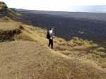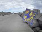 La randonnée débute au parking jouxtant le rond-point. Le parc, étroit et tout en longueur, est planté de quelques arbres qui poussent lentement. Une piste cyclable venant du Parc Boisé, large et totalement plate, longe la côte. C'est là que débute la boucle qui mènera jusqu'au port (Photo 1). La région est chaude même lorsque le temps est couvert comme ici. Ne pas chercher d'ombre car les arbres sont jeunes et espacés (Photo 2). Très vite, il est possible de quitter la piste cyclable et de se rapprocher au plus près de la plage de galets (Photo 3). Lorsque la piste est très proche, les coureurs délaissent le sentier pour revenir sur le bitume ou préfèrent la pelouse (Photo 4). Après 15 minutes à naviguer entre pelouses brûlées et galets, on remarque un sentier descendant vers la mer et une trace dans le sable filant vers la Pointe des Galets (Photo 5). Les empreintes très nombreuses sur la plage prouvent que les coureurs ne craignent pas le sable dans les chaussures (Photo 6). On longe une falaise de galets empilés depuis des millénaires. L'endroit est friable et n'encourage pas à grimper. On remarque, sur la gauche, quelques statues sans doute destinées à invoquer un saint, probablement malgache (Photo 7). Poursuivre en direction des dernières falaises en regardant les pêcheurs (Photo 8). A la fin de la plage, remonter le talus créé par les dizaines de camions venus déposer leur chargement de galets. On émerge sur une longue route bétonnée menant presque aux bassins du port. Le paysage change du tout au tout et peut faire regretter le parc. Mais les coureurs ne demandant qu'à faire de longues distances, apprécient ce paysage plat, idéal pour l'entraînement. Sur la droite, on ne distingue pas l'océan caché derrière des plots bétonnés de plusieurs tonnes (Photo 9). A gauche, les premières séries des 25 immenses cuves de carburant de plusieurs milliers de m3 chacune occupent tout l'espace (Photo 10). Longer ces montagnes de béton sachant qu'un sentier se trouve à une quinzaine de mètres pour le retour (Photo 11). Même les fresques peintes sur les blocs ont du mal à redonner de l'éclat à cette courte traversée (Photo 12). A la fin de la route bétonnée, après une esplanade créée également par les centaines de camions de galets, on arrive à revoir les vagues. Poursuivre sur la piste de cendre en longeant cette fois des barbelés qui protègent les cuves (Photo 13). On marche parallèlement au Bassin des Kerguelen entouré d'immenses entrepôts (Photo 14). Par beau temps, on peut voir une partie du Cirque de Mafate à l'horizon. Le chemin poussiéreux se termine au Bassin Bardot, face au chenal qui s'ensable. Les excavatrices creusent sans cesse pour gagner en profondeur. Des bateaux y sont ancrés dont le Marion Dufresne, près de la Base nautique des Mascareignes, lorsqu'il n'est pas en expédition (Photo 15). Il est possible de poursuivre jusqu'à la pointe du port. Reprendre la piste et marcher jusqu'au début du sentier, facile à repérer le long du grillage (Photo 16). Il est agréable de retrouver de véritables sentiers de randonnée, même s'ils frôlent des barrières infranchissables (Photo 17). La route empruntée à l'aller est à une dizaine de mètres seulement lorsque l'on parvient à la savane (Photo 18). Les traces laissées par les coureurs se terminent peu après de gros tas de roches (Photo 19). Reprendre une piste bétonnée longeant les réservoirs sur 300 m. Des barrières, qui sont certainement fermées à des périodes de la semaine, imposent de chercher sur la gauche un passage. On le trouve facilement aux traces de passages laissés par les joggeurs (Photo 20). Suivre une piste goudronnée longeant des aires de stationnement abandonnées entourées d'épineux (Photo 21). On retrouve la verdure et la route en traversant une dernière savane sèche menant aux parkings (Photo 22). On revient également à la piste cyclable délaissée en début de boucle qui passe sous les filaos alors qu'on suit l'itinéraire sur terre battue (Photo 23). La fin du parcours suivra constamment cette belle allée bordée de plus en plus d'arbres (Photo 24). Dès que possible, utiliser celle de droite pour s'éloigner de l'itinéraire de départ (Photo 25). Des haltes sont possibles à l'ombre des filaos, sur l'herbe qui n'est pas toujours verte selon la saison (Photo 26). Contourner par la droite l'aire de jeux d'eau qui doit amuser les enfants en fin de semaine (Photo 26). Terminer le dernier kilomètre par la traversée de la partie la plus boisée du parc jusqu'au parking (Photo 28).