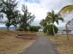 La région du Port n'a jamais été renommée pour ses randonnées. Loin des premières collines, bruyante, brûlée par le soleil, dépourvue de plages, elle doit surtout sa puissance dans l'île à la présence de fonds marins suffisamment profonds pour y faire accoster de gros bateaux. Au nord des infrastructures, citernes de carburants, autoroutes et entreprises de toutes catégories, existe un long parc étroit qui longe la plage de galets ou de sable noir. Une piste cyclable, des aires de sport et un chemin sableux attirent des sportifs portois qui viennent ici pratiquer quelques activités. A la pause méridienne, des dizaines de personnes viennent déguster leur cari à l'ombre des raisins de mer et des palmiers. Si la partie nord s'effectue dans un parc boisé, la portion ouest longe d'impressionnantes murailles de béton censées protéger la zone industrielle des assauts des vagues. Cette courte boucle peut aisément se greffer à une sortie urbaine plus longue organisée en ville.