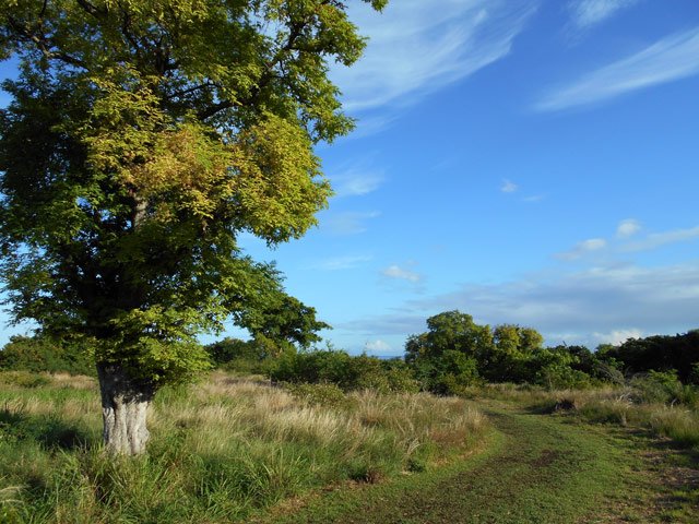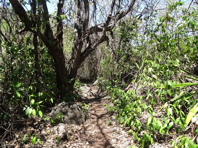 La randonnée débute à la Rue Hubert Delisle à la Possession, près du pont qui enjambe la Grande Ravine des Lataniers. Suivre le sentier qui la longe en rive gauche jusqu'à s'approcher au plus près de la ravine pour la traverser sur des galets très souvent à sec. Le Parc Elizabeth Rosthon débute de l'autre côté. Prendre à droite et emprunter la large piste bordée de gros galets (Photos 2 et 3). En fin d'année, les mangues pourrissantes tombées au sol font perdre un peu de charme à l'endroit qu'on traverse très rapidement. Poursuivre sur la même piste devenue herbeuse (Photo 4), bordée d'acacias, bois noirs et tamarins. Laisser la première piste qui part vers la Kalla puis la deuxième qui monte vers la carrière. Toujours suivre la piste principale et terminer par un sentier qui s'enfonce sous les arbres avant de franchir la Petite Ravine des Lataniers sur un gué facile mais aux galets branlants. Le sentier se poursuit dans une végétation plus fournie qu'au départ. Prendre le sentier de droite le plus marqué par les passages et entamer une courte mais assez forte pente caillouteuse comportant de grandes marches. Plusieurs embranchements se rencontrent dans cette montée. Prendre plutôt vers la gauche pour rallonger un peu sans toutefois utiliser le sentier qui descend vers la ravine. Le sentier se finit à la route et rejoint une aire de repos offrant de beaux panoramas sur la mer (Photo 9). Repérer sur la gauche l'escalier qui débute sous des tamarins. On remarque bien le sentier qui se poursuit vers le haut en passant près d'un pylône électrique (Photo 11). Un autre sentier part sur la gauche mais se termine 150 mètres plus loin. il est utilisé par les habitants pour éviter de longer la route pour gagner l'aire de repos. Le sentier reste tout d'abord agréable à travers les acacias et chocas (Photo 12). Très vite, il descend de manière parfois abrupte sur des milliers de cailloux surchauffés (Photo 13). Au premier croisement, prendre sur la droite et longer la Petite Ravine des Lataniers par un cheminement à plat entre les gros cailloux (Photo 16). On passe près de vestiges puis on rejoint le large sentier pris à l'aller (Photo 18). Tourner à gauche et retrouver l'itinéraire pris après le gué. Franchir à nouveau ce gué et prendre plus loin la piste partant sur la droite. Elle chemine dans un beau paysage composé de hautes herbes où poussent de très grands tamarins (Photos 19, 21 et 22). Les tamarins cessent pour être remplacés par les manguiers. Au lieu de rejoindre rapidement l'entrée du parc par la gauche, privilégier une balade vers la droite pour rejoindre des bambous et les berges de la Petite Ravine des Lataniers (Photo 23). La suivre en rive gauche jusqu'à un sentier qui longe le fond de la ravine. Marcher en rive droite le plus longtemps possible. Quand le sentier disparaît presque et que la marche devient plus difficile, viser le tuyau noir qui a été accroché à la rambarde métallique sur le mur d'en face (Photo 24) et rejoindre le sentier de départ par une montée ludique de 2 mètres qui amusera les enfants. Le véhicule n'est plus qu'à 200 mètres.
