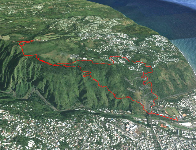 Depuis l'exceptionnelle remise en état du sentier des Rampes de la Montagne , on peut désormais remonter vers le Colorado ou rejoindre le Chemin Crémont (ou Chemin des Anglais) vers la Possession, sans avoir à emprunter le sentier du Colorado, plus éloigné vers l'Est. Une boucle proposée pour gagner le Colorado par l'ouest et redescendre par l'est empruntait de longues portions de route. Pour les allergiques au goudron et aux portions urbaines, la boucle présentée sur cette fiche, plus courte, permettra de rejoindre l'aire de loisirs en utilisant un sentier moins connu passant au plus près du Lycée technique de la Montagne. Un peu envahi de végétation et comportant une forte pente sécurisée par un long câble il deviendra vite praticable si nous sommes nombreux à y passer. On garde ainsi l'avantage de pratiquer une boucle, agréable dans le cadre d'un entraînement au plus près de Saint-Denis, qui ne passe pas en ville. On n'est pas obligé de monter au Colorado au moment de la jonction et la boucle sera ainsi substantiellement raccourcie. Se référer aux circuits cités ci-dessus pour de plus amples explications.