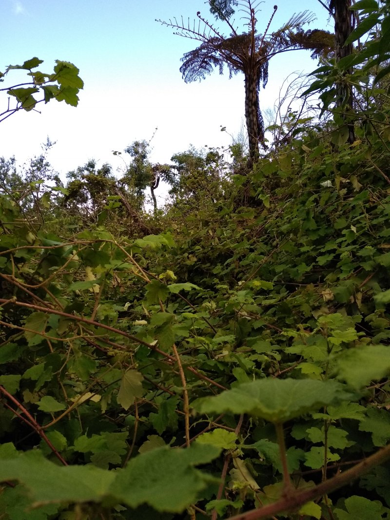 Ce circuit, qui reprend deux itinéraires déjà présentés pour faire le tour de Grand Coude et se rendre aux Trous de Cissia, offre aux randonneurs une nouvelle idée de boucle un peu sportive mais qui permet de traverser une magnifique forêt semi-primaire et admirer la région par de superbes panoramas. La boucle est courte, ne comporte pas de montées abruptes malgré quelques raidillons, présente des portions très glissantes dans la descente du rempart de Grand Pays et utilise un peu de route bétonnée qui n'enlève rien au plaisir de marcher dans les prairies. Malgré tous ces avis sur le mauvais état du parcours, on voit que le sentier est fréquenté. La végétation a certes repris ses droits mais jamais sur le sentier. Quelques coups de sabre ont augmenté la largeur du passage, mettant d'ailleurs à mal les sabres péi Machaerina iridifolia (paille sabre, sabre marron) Cyperaceae -Endémique des Mascareignes dans la descente où ils foisonnent. Il est regrettable d'arriver au kiosque après plus de 2 kilomètres de montée envahie par les herbes et les plantes et de trouver un panneau qui semble avoir été installé il y a deux heures tellement il est neuf et de remarquer que rien n'est entrepris pour de quelconques nettoyages. Comme un des panneaux précise que "le Département valorise les forêts de la Réunion", ceci explique peut-être cela : il est vrai qu'en fermant la totalité des sentiers de randonnée, peut-être les forêts seront-elles mieux préservées puisque plus personne n'y aura accès ! Alors pourquoi le panneau ?