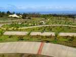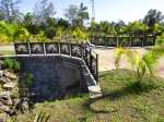 La randonnée débute au parking nord du parc mais peut tout aussi bien commencer au sud. Une fois stationné, rejoindre l'escalier dominant l'esplanade et viser le belvédère que l'on aperçoit au fond (Photo 2). Les palmiers sont déjà là auprès des bassins et des jets d'eau (Photo 3). Du belvédère qui domine le parc de quelques mètres on a sous les yeux la totalité des plantations et le long serpent de la piste bétonnée descendant en direction de l'océan (Photo 4). C'est cette longue piste sur une petite surface qui attire les coureurs à pied (Photo 5). Quitter le belvédère et rejoindre cette piste en lacets puis entamer la longue descente. Les palmiers nouvellement plantés sont très nombreux mais très souvent de la même espèce. Difficile d'imaginer ce que donneront tous ces "arbres" dans quelques années (Photo 6). Repérer, sur le sol, les indications en couleur des différents circuits de footing et les distances déjà parcourues (Photo 7). Si l'on perd en beauté du parc, on y gagne en panoramas sur le Dimitile et les sommets entourant le Cirque de Cilaos (Photo 8). Pour varier l'itinéraire, prendre la première piste à droite qui descend à travers ces nouvelles plantations. On rencontre plusieurs sentiers assez fréquentés par les coureurs (Photo 9). Un peu plus bas, il est conseillé de quitter le béton pour emprunter un de ces parcours sur la terre et l'herbe (Photo 11). On retrouve très vite les pistes en arrivant à l'orée du premier parc (Photo 12). La transition est courte mais la différence importante. On imagine plus facilement ce que sera le nouveau parc en regardant les grands palmiers poussant dans un fouillis très organisé (Photo 13). La ravine du fond se passe actuellement en empruntant une déviation créée en raison d'un éboulis des berges. Après la ravine, reprendre les chemins bétonnés en profitant de petits panneaux indiquant noms et origines des palmiers (Photo 14). Emprunter de nouveaux sentiers de raccourcis pour atteindre le cœur du premier parc en franchissant un pont (Photo 15). La balade, très instructive, s'effectue au milieu de grands palmiers de toutes les régions du monde (Photo 16). Certains atteignent des hauteurs fort raisonnables (Photo 17). En quittant le béton pour des chemins ombragés sur terre rouge, on peut atteindre aisément un petit bassin, son jet d'eau et l'autruche de David Nativel, une sculpture métallique (Photo 18). L'esplanade Sud se remarque facilement au parking tout proche. Les superbes palmiers de Bismarck se laissent facilement photographier (Photo 19). Repérer ce parking pour une prochaine visite (Photo 21). Il est plus petit que celui du nord mais on pénètre directement dans le parc des grands palmiers. Le panneau, identique à celui de l'autre entrée indique bien les circuits de marche et leur couleur (Photo 22). Prendre la direction du retour en suivant pistes bétonnées ou petits chemins ombragés (Photo 23). Même proches de la route on y marche au calme et souvent seul (Photo 24). Il n'est pas interdit de marcher sur les pelouses mais elles sont si bien entretenues qu'on n'ose à peine se rapprocher d'un panonceau pédagogique (Photo 26). Profiter de toutes les merveilles de la nature avant de revenir au nouveau parc où aucun palmier n'est en âge de produire des fleurs (Photo 27). Après l'école, on retrouve la piste montant en lacets pour rejoindre le belvédère. Avant de repartir, gagner les aires de jeux si l'on est venu avec des enfants ou pourquoi ne pas utiliser les appareils de musculation mis gracieusement à la disposition des sportifs (Photo 28).