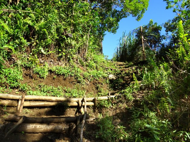 Par la route, il y a 7,5 km entre les deux débuts de sentier présentés ici. Durant de longues générations, les habitants des deux villages se rendaient visite en empruntant le sentier escarpé de l'échelle, le tout pour environ 1 km en utilisant la partie nord de la boucle. Remis en état de manière exemplaire par l'ADE présidée par Monsieur PAUSE (Association de Développement de l'Espérance), cette boucle permet de se mesurer à de véritables murailles sur un sentier aux hautes marches bordées de verdure. La boucle reliant les deux villages, on peut partir de l'un d'entre eux sans préférence. La boucle présentée ci-dessous débute à l'Espérance les Hauts. Une excellente idée pour calmer les ardeurs d'un enfant voulant marcher moins de 3 kilomètres ou amener belle maman qui se plaint toujours de ne pas être conviée aux randonnées ! Circuit idéal pour les habitants du chef-lieu qui peuvent l'effectuer 4 ou 5 fois de suite dans le cadre d'un entraînement à une compétition de montagne comme on les aime tant à la Réunion.