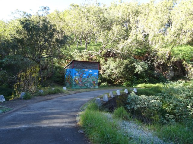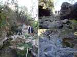 Petite boucle aventure : Suivre la route sur une courte distance à l'ombre des tamarins (Photo 9). Une citerne joliment décorée par une demi-douzaine de Gouzous de Jace occupe la rive gauche de la Ravine Bernica (Photo 10). Prendre aussitôt la RF de l'Eperon rencontrée à droite. 300 m plus loin délaisser cette piste puis obliquer à gauche sur la PF de St-Gilles, envahie de hautes herbes et très étroite (Photo 11). Si elle fait rêver sur la carte, il en va tout autrement sur le terrain. Elle disparaît dans les calumets au moment de franchir la Ravine Saint-Gilles. L'aventure débute dans les bambous endémiques par une courte descente sans danger vers le lit de la ravine. Pas d'échappatoire visible sur l'autre rive. Entamer sans hésiter la remontée de la ravine pour un hors sentier qui ravira même les allergiques aux fonds basaltiques. On côtoie une succession de cassés, grottes, cavernes, cascades à sec à l'aspect très sauvage (Photo 12). De rares escalades sont nécessaires pour éviter des gouffres creusés par les crues (Photo 12). On parvient de manière très ludique au pont de la RF des Tamarins (Photo 14). Avant de trouver la trace en amont du pont, en rive gauche pour rejoindre la route, ne pas hésiter à pousser pour la dernière découverte d'un cassé infranchissable (Photo 15).