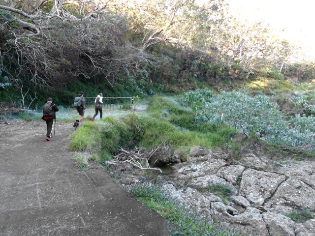 La randonnée débute au croisement de la Route Forestière des Tamarins, de la Piste Bolon et de la Piste Bernica. Partir à droite et suivre la large piste Bernica à l'abri des tamarins qui la bordent. Les nombreux passages de camions ont enlevé toute trace d'herbe sur la première partie. On tombe rapidement sur une sculpture rougeoyante réalisée dans un tronc de tamarin (Photo 1). Sur le bord de la piste, d'autres troncs de cryptomerias empilés sont moins glamour mais sur de courtes distances (Photo 2). Plus loin, le sol est herbeux, humide le matin car le soleil y arrive plus tardivement. L'hiver, le givre blanchit la piste produisant des craquements sous la semelle (Photo 3). La piste, qui devient de plus en plus sinueuse, coupe quelques sentiers de descente pour VTT. Le relief est quasiment plat et la marche s'effectue sans efforts dans les herbes (Photo 4). On franchit sans aucun danger de multiples ravines canalisées sur quelques mètres pour faire passer la piste sur de petits ponts. Certains fonds de ravines sont rocheux et d'autres envahis de végétation. On arrive bientôt à la Ravine la Source qui se franchit sur un radier avant de rencontrer plus loin la Piste Forestière des Palmistes (Photo 5). Le chemin, bordé de barbelés fait des lacets et descend en pente très douce à travers jouvences et érigérons ayant colonisé les abords occupés par de grands tamarins (Photo 6). La piste est toujours aussi belle, aussi large et la marche agréable malgré les hautes herbes par moments (Photo 7). On est très proche du sentier de la Tamarinaie mais les raccourcis qui y mènent sont très envahis de végétation. En revanche, les tamarins centenaires donnent envie de revenir effectuer une partie de la boucle en fin de parcours (Photo 8). A la fin de la piste Bernica, dans un lacet, prendre à gauche à la très large piste des Palmistes. Elle finit rapidement à la RF des Tamarins. Deux possibilités à partir de la RF des Tamarins : Partir à gauche pour revenir au point de départ ou à droite pour une sortie plus aventureuse.