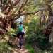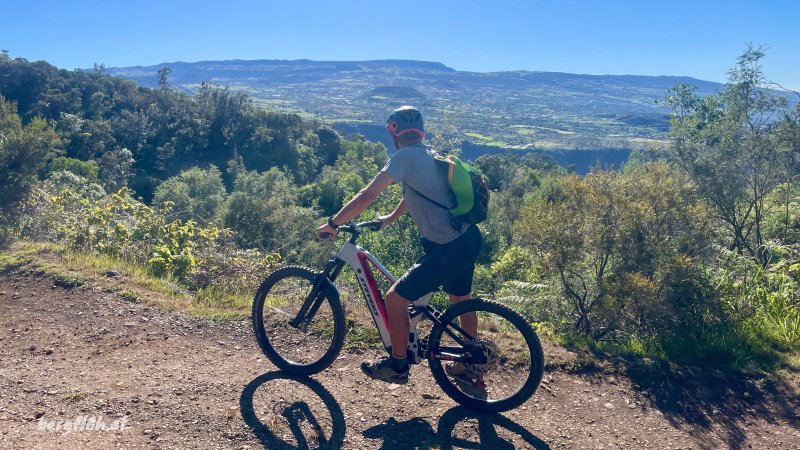 La randonnée débute à la fin de la route officielle et le début de la route réglementée. Après le passage de la ravine Argamasse, prendre le sentier sur la gauche. Il s'enfonce dans les bois de couleurs et entame une longue montée en lacets. Le sol est un peu glissant, recouvert de racines par endroits (Photo 3) ou de marches plus ou moins hautes. Quelques roches, des jouvences et des fougères bordent le sentier. Plus on monte et plus les acacias noirs envahissent les sous-bois. Encore une trentaine d'années et il ne restera rien d'autre dans cette magnifique zone verte. Peu de points de vue ou bouchés par la végétation (Photo 4). Une montée plus forte que les autres se termine à la piste Jean Dubard près d'une pierre gravée. Le sentier borde alors la piste (Photo 6) qui permet d'atteindre plus haut le Sentier Mal au Ventre. Il devient de plus en plus agréable dans les branles verts qui se multiplient (Photo 7) et des trouées plus importantes qu'en début de montée permettent d'apercevoir les flancs boisés tout autour. Les parties glissantes se multiplient et imposent parfois de marcher sur le bord herbeux. Le cheminement est plus délicat en descente s'il a plu récemment. Après avoir coupé la route une nouvelle fois (Photo 10) près d'une petite case entourée de fleurs, les panoramas deviennent fréquents vers le Tampon et les Gorges du Bras de la Plaine. Trois beaux tamarins (Photo 11) marquent la fin du sentier de la Chapelle. Il faut alors emprunter la piste et la remonter jusqu'à la chapelle qui domine la vallée (Photo 12). Poursuivre, toujours sur cette piste et marcher jusqu'au départ d'un petit sentier bordé de balises de toutes les couleurs (Photo 14) puis jusqu'à la clôture en bois du camp Marron. Poursuivre vers le Dimitile en évitant de partir sur la gauche vers la Grande Jument. La dernière montée sur des marches en rondins casse bien les jambes(Photo 18). Le panorama au sommet fait oublier ce court effort. La table d'orientation (Photo 19)permet de mieux situer les villages et sommets qui s'étendent à 220 degrés du Tampon au Bonnet de Prêtre et Palmiste Rouge. Le spectacle mérite une longue halte avant d'entreprendre la descente. Au premier croisement, prendre à gauche et rejoindre le bord du rempart pour le longer environ 750 mètres et profiter de nouveaux panoramas sur le cirque avant de bifurquer vers le musée. Comme tout le reste du circuit s'effectuera en descente sur piste, ne pas hésiter à prendre son temps pour visiter les lieux et lire les multiples pancartes explicatives sur la vie des esclaves, des révoltes, des chasseurs, du marronnage ou de Dimitile (Photo 17). Après la visite, emprunter la piste très proche et ne plus la quitter jusqu'au parking du départ. Elle est toujours large et de bonne qualité (Photo 23). Elle serpente dans de belles vallées verdoyantes ou des forêts de bois de couleurs. Les points de vue sont plus nombreux que sur le sentier utilisé dans la montée. Certaines portions particulièrement pentues sont bétonnées (Photo 25). On retrouve les croisements avec le sentier de la Chapelle à plusieurs reprises. La piste fait parfois de longues boucles pour revenir presque au même endroit. Repérer, pour une prochaine balade, le sentier Mal au Ventre puis celui des Trophées Mondiaux qui empruntent des parties communes. A un moment la piste remonte légèrement mais replonge aussitôt vers la Ravine Argamasse ((Photo 26), fin de la boucle.
