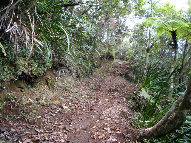 Une partie de ce trajet a déjà été présentée comme une étape de circuits plus longs comme la Jument, la montée au Sommet de l'Entre Deux ou la longue distance pour relier le Dimitile à Cilaos. A la demande de certains randonneurs voici une nouvelle fiche qui ne décrit que la montée au Dimitile par le Sentier Bœuf ou de la Chapelle et la descente par la Piste Jean Dubard. Elle permet à certains marcheurs n'ayant que peu de temps et voulant profiter des grandioses panoramas sur le Cirque de Cilaos depuis la table d'orientation du Dimitile, d'obtenir quelques éléments pour préparer ce rapide aller-retour. La montée par le sentier comporte quelques pentes assez fortes dans les bois de couleurs ou les branles verts et propose très peu de beaux points de vue. La piste qui serpente sur les flancs du Dimitile est beaucoup plus agréable à parcourir qu'on l'imagine. Elle est large et propre et fournit en revanche de nombreuses occasions de contempler la région du Tampon et des villes proches de l'océan. Quelques pièces dans la poche permettront, avant le sommet, de visiter le musée du Marronnage et voir la reconstitution de huttes sommaires du Camp Dimitil'. Conseil : repérer au passage le musée et monter, avant de le visiter, pour profiter des panoramas sur le Cirque de Cilaos avant l'envahissement fréquent et matinal des nuages.