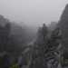 Ce sentier, encore marqué sur la carte d'un très discret trait noir, se suit sans problème si on en trouve le départ et qu'on repère les balises régulièrement espacées. A l'époque, ce magnifique sentier comportait des centaines de tâches de peinture blanche pour éviter de s'égarer par temps de brouillard. Recouvertes de peinture noire à l'édition du premier arrêté de fermeture, les balises étaient censées avoir disparu. Seulement, la peinture noire employée, de moins bonne qualité que la blanche, a été détruite par les UV et les balises grises qui demeurent sont presque aussi faciles à suivre que sur n'importe quel sentier officiel. Le plus délicat est donc de trouver la première tâche grise à mi-parcours de la descente. Une fois cette vieille balise repérée, il suffit de marcher les yeux au sol et on arrive à l'éboulis sans hésitation. Plus loin, après l'éboulis, elles sont plus rares mais des cairns ont été régulièrement élevés, même si certains sont discrets.