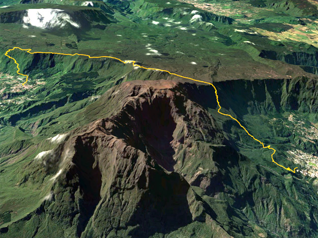 Quitter Hell-Bourg en direction du Gîte de Bélouve - Remonter jusqu'au gîte puis suivre la piste jusqu'aux antennes - Poursuivre le long du rempart vers Cap Anglais puis vers le Gîte de la Caverne Dufour - Entamer la descente vers Cilaos - Au Bloc, suivre la route jusqu'à la petite route de la Roche Merveilleuse et bifurquer immédiatement sur le sentier de droite - Remonter vers le sentier de Découverte, traverser la piste de la Roche Merveilleuse puis continuer jusqu'au croisement emprunté il y a deux jours - Prendre à gauche en direction des Thermes de Cilaos, fin de la boucle.
