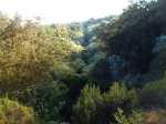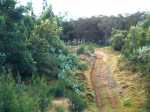 En fin de boucle, pour voir de plus près la piste qui remonte entre les kiosques et en la suivant jusqu'à la fin, on se retrouve sur une ligne domaniale. En partant sur la gauche vers la Ligne de la Grande Ravine, on est obligé de traverser deux ravines. Si la première est aisée et ne pose aucun problème, la seconde est impressionnante (point rouge). Il faut descendre d'une trentaine de mètres en lacets dans les jouvences qui ont recouvert le sentier. Cette descente passe encore en prenant garde. La traversée de la ravine est étroite et assez facile, toujours sur les jouvences qui cachent le sol. En revanche, on utilise un acacia noir tombé au sol sur les trois premiers mètres de la remontée. Il faut faire TRES attention à la chute car le tronc est glissant. En cas de doute en haut de la butte, faire demi-tour et retraverser la forêt de cryptomerias. Si on décide de ne pas effectuer cet écart, ne pas partir entre les kiosques et filer tout droit sur la route (itinéraire bleu).