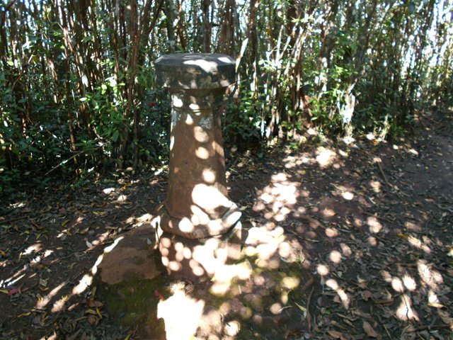 La randonnée débute au très classique point de vue sur Rivière Noire qui attire chaque jour de très nombreux touristes (Photo 1). Des camelots installés sur la grande aire appellent le chaland pour proposer des souvenirs. Les singes amusent enfants et adultes mais peuvent être chapardeurs ; attention aux lunettes, casquettes et appareil photos (Photo 3). Après une visite pour admirer ce superbe panorama dont le piton sur la gauche qu'on va bientôt atteindre (Photo 2), reprendre la route en direction de Chamarel et marcher 200 mètres à partir du parking. Le sentier débute sur la droite et est impossible à manquer (Photo 4). Il pénètre immédiatement sous les goyaviers qu'on ne quittera plus jusqu'au sommet (Photo 5). Le sentier est large au début, se rétrécit un peu ensuite, boueux parfois même s'il n'a pas plu. Il vaut mieux l'éviter par temps très humide pour garder les chaussures propres et surtout ne pas glisser. Après quelques centaines de mètres, on rencontre une magnifique borne de 1837 (Photo 6). Étonnamment, le sentier descend plus souvent qu'il ne monte, excepté le dernier hectomètre. C'est une succession de petites montées et de courtes descentes. Les goyaviers poussent si serrés qu'on ne bénéficie que de très rares points d'observation. Après 1500 mètres de ce cheminement, les premières pentes demandent un peu plus d'efforts mais ne comportent aucun piège. De gros cailloux érodés occupent parfois le passage mais gênent peu (Photo 9). A 2000 mètres, sur la gauche, une fenêtre dans la végétation offre un splendide point de vue sur Morne Brabant et son lagon (Photo 12). Après la succession de montées et descentes, on parvient au pied du piton (Photo 18). Si le temps est sec, la montée est presque ludique puisque ne comprenant aucun danger, sauf celui de ne plus maintenir la corde et de glisser vers le bas. Remarquer au passage le cyprès centenaire et une grande partie de son tronc tombé au sol (Photo 20). Avant sa chute, on devinait immédiatement l'emplacement du piton depuis le point de vue sur la rivière. Il y a peu d'espace au sommet du piton qui est plat mais on y trouve cependant un banc coloré (Photo 22). Le magnifique panorama circulaire est à couper le souffle : vues sur le parc, l'île ou les lagons (Photo 23). Attention où l'on pose les pieds car des restes métalliques dépassant du sol peuvent blesser. Le sentier se poursuit vers les autres pitons aperçus vers le nord mais il est beaucoup plus étroit et s'adresse à des randonneurs un peu plus aventureux. Un autre sentier débute au bas des cordes et se dirige vers le sud dans les mêmes conditions ; il finit en propriété privée. Après avoir profité au maximum de la fraîcheur et des panoramas, entreprendre la descente en prenant garde où poser les pieds au début. Par la suite, le sentier offre la même balade qu'à l'aller à l'ombre de goyaviers ou de rares bois de couleurs.
